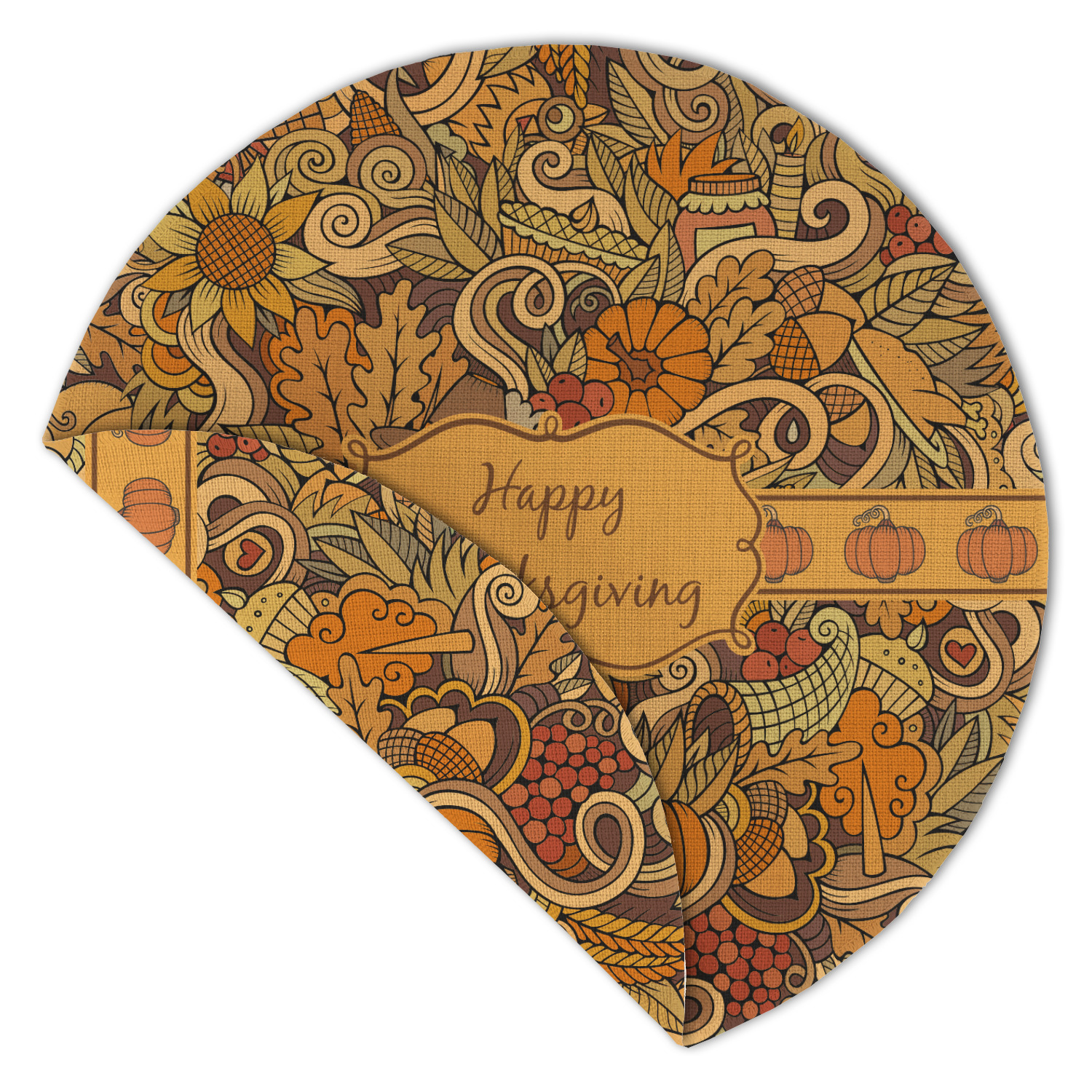This beautiful thanksgiving design is hand drawn and includes many thanksgiving as well as fall traditions. The design colors represent all the beautiful fall colors of brown and orange. We have this pattern available to you in two colors - one is in the classic fall colors of browns and oranges, while the other background is brighter and also includes more reds and greens. We have chosen to use the more classic colors - however, it is super easy to make the change in our customization system.
