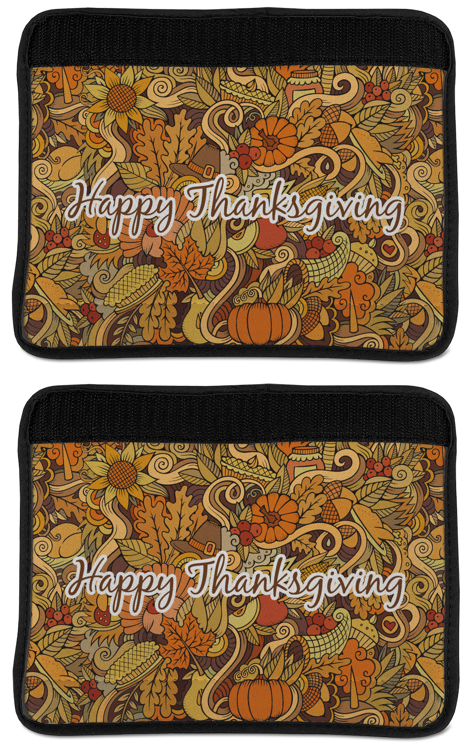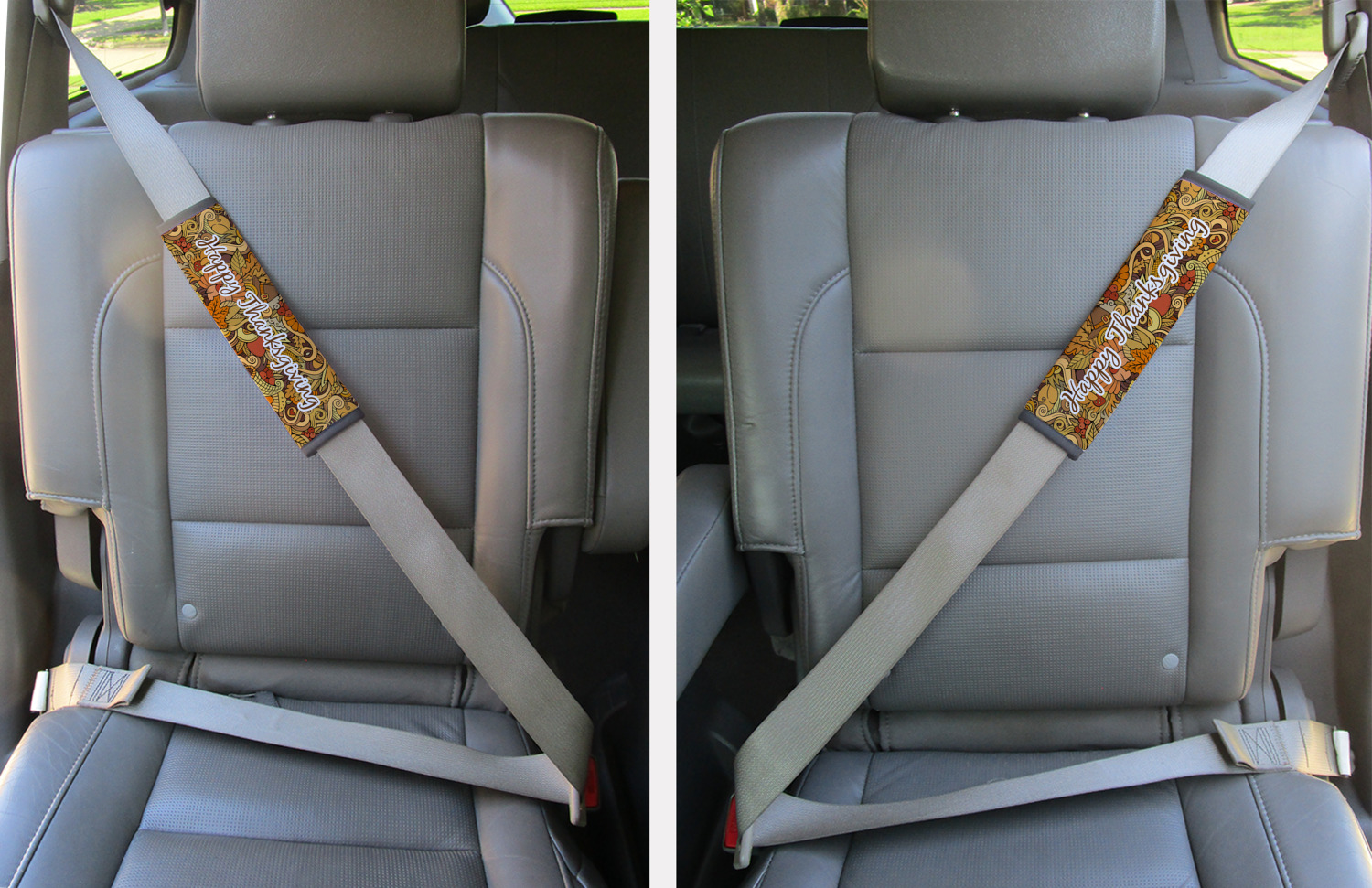 Made from neoprene, our seat belt strap covers wrap around the belt itself and have a Velcro tab for easy attachment and closure. The belt's edges are trimmed with a black polyester for a secure finish. Each cover is 9.5 by 7 inches when open and 9.5 by 2.5 inches when closed. We print your personalized design on the face of the seat belt pad.
