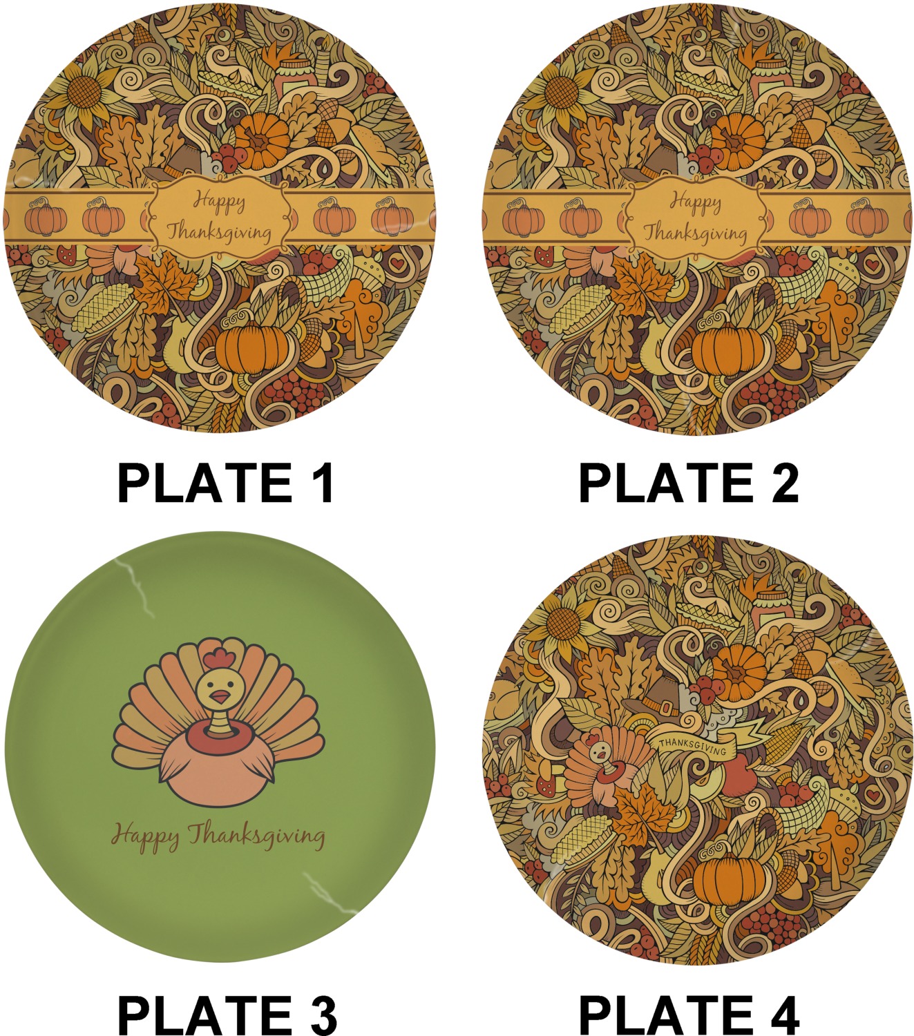 This beautiful thanksgiving design is hand drawn and includes many thanksgiving as well as fall traditions. The design colors represent all the beautiful fall colors of brown and orange. We have this pattern available to you in two colors - one is in the classic fall colors of browns and oranges, while the other background is brighter and also includes more reds and greens. We have chosen to use the more classic colors - however, it is super easy to make the change in our customization system.