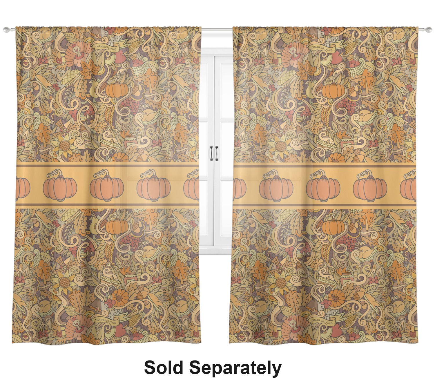 This beautiful thanksgiving design is hand drawn and includes many thanksgiving as well as fall traditions. The design colors represent all the beautiful fall colors of brown and orange. We have this pattern available to you in two colors - one is in the classic fall colors of browns and oranges, while the other background is brighter and also includes more reds and greens. We have chosen to use the more classic colors - however, it is super easy to make the change in our customization system.