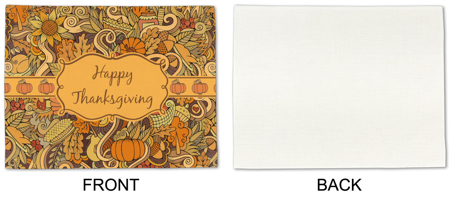This beautiful thanksgiving design is hand drawn and includes many thanksgiving as well as fall traditions. The design colors represent all the beautiful fall colors of brown and orange. We have this pattern available to you in two colors - one is in the classic fall colors of browns and oranges, while the other background is brighter and also includes more reds and greens. We have chosen to use the more classic colors - however, it is super easy to make the change in our customization system.