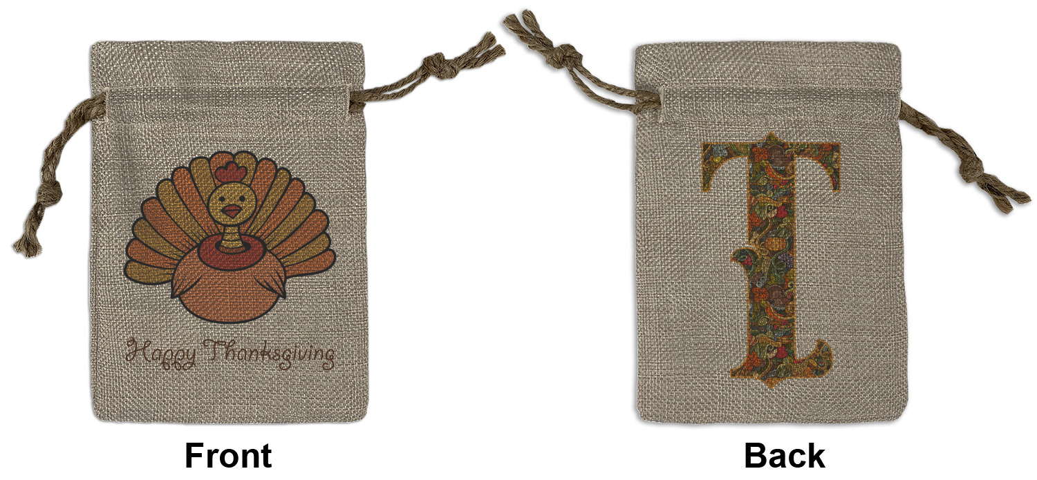 We sell our Burlap Gift Bags in 3 variant sized bags. Made with burlap polyester, each personalized bag can be secured with a twine drawstring pull. Your custom design is available to print on one side or both sides - completely up to you! The sizes of the bags measure approximately 4.5" x 6.5" for the smallest size, 6.5" x 8.0" for the medium size, and 6.5" x 13.5" for the large-sized bag.
