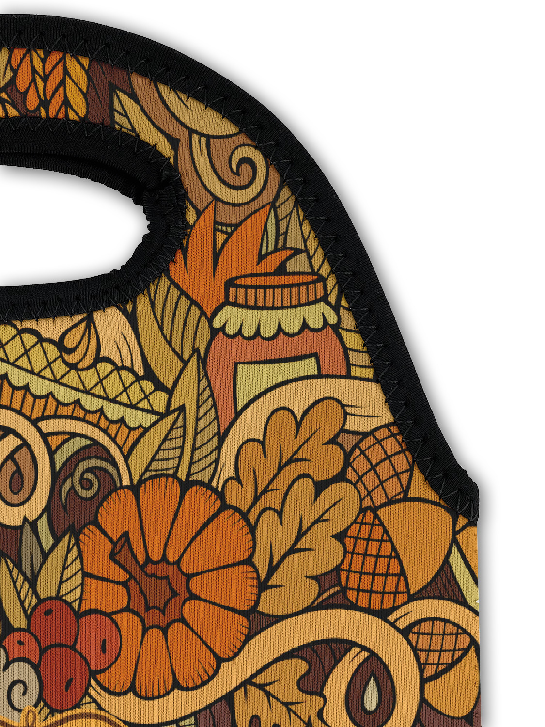 This beautiful thanksgiving design is hand drawn and includes many thanksgiving as well as fall traditions. The design colors represent all the beautiful fall colors of brown and orange. We have this pattern available to you in two colors - one is in the classic fall colors of browns and oranges, while the other background is brighter and also includes more reds and greens. We have chosen to use the more classic colors - however, it is super easy to make the change in our customization system.