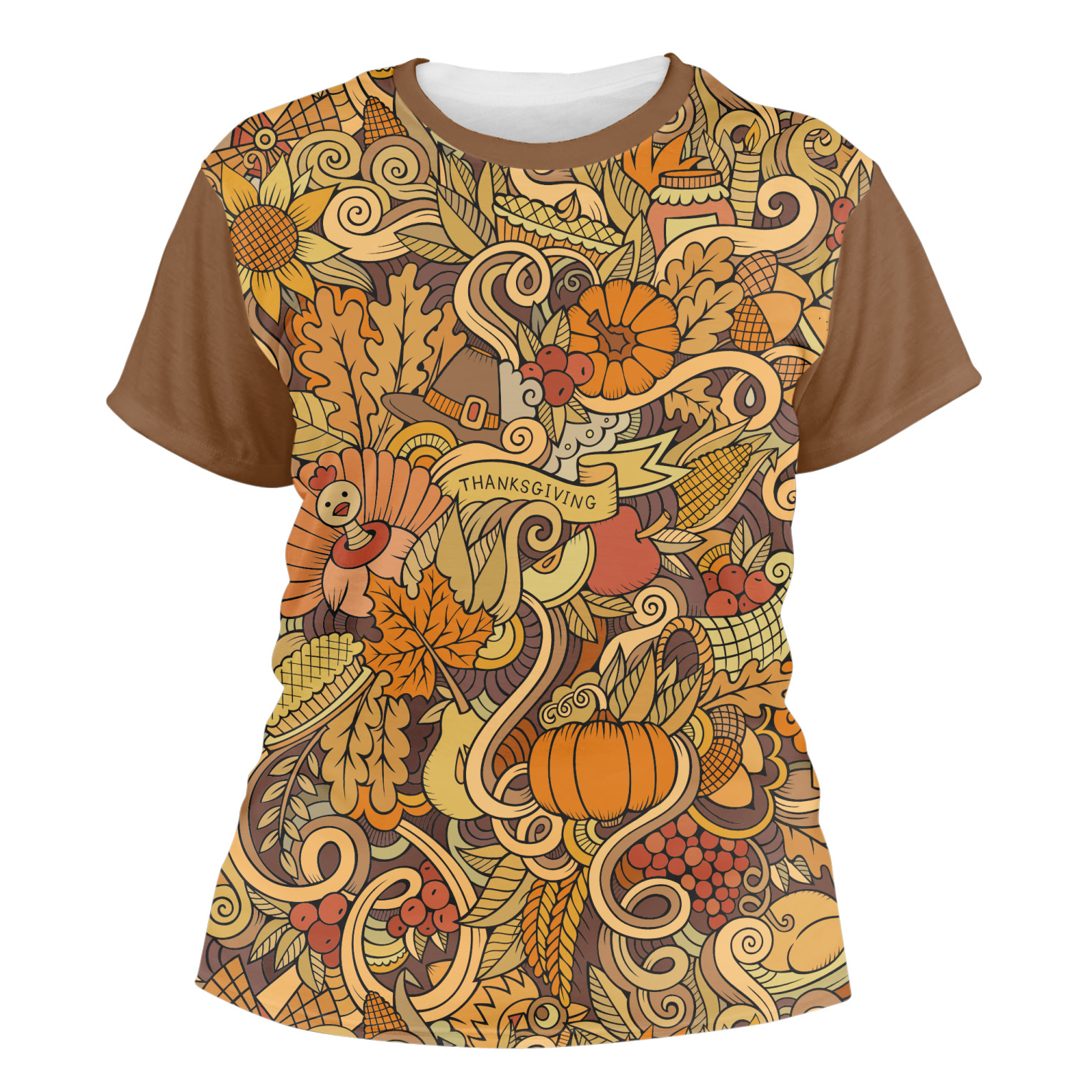 This beautiful thanksgiving design is hand drawn and includes many thanksgiving as well as fall traditions. The design colors represent all the beautiful fall colors of brown and orange. We have this pattern available to you in two colors - one is in the classic fall colors of browns and oranges, while the other background is brighter and also includes more reds and greens. We have chosen to use the more classic colors - however, it is super easy to make the change in our customization system.