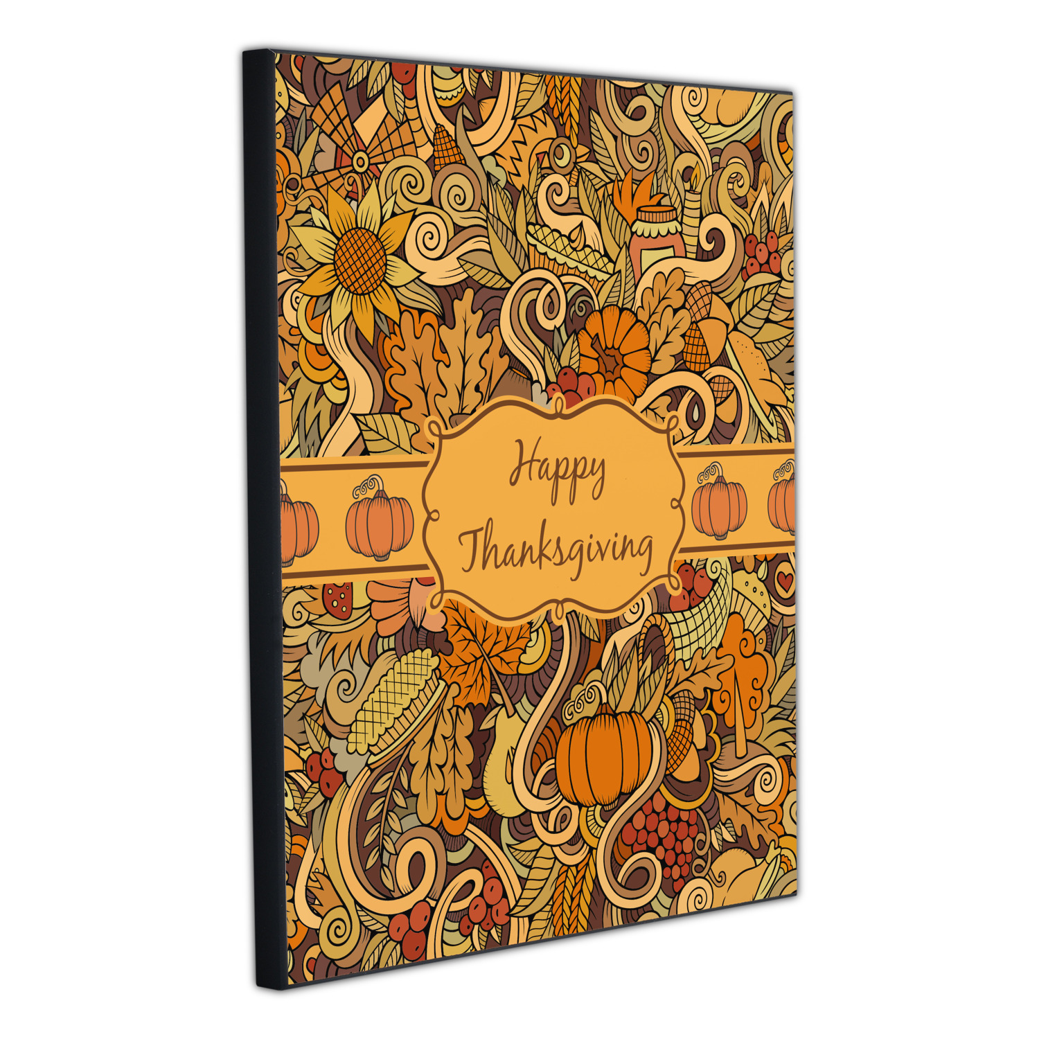 This beautiful thanksgiving design is hand drawn and includes many thanksgiving as well as fall traditions. The design colors represent all the beautiful fall colors of brown and orange. We have this pattern available to you in two colors - one is in the classic fall colors of browns and oranges, while the other background is brighter and also includes more reds and greens. We have chosen to use the more classic colors - however, it is super easy to make the change in our customization system.
