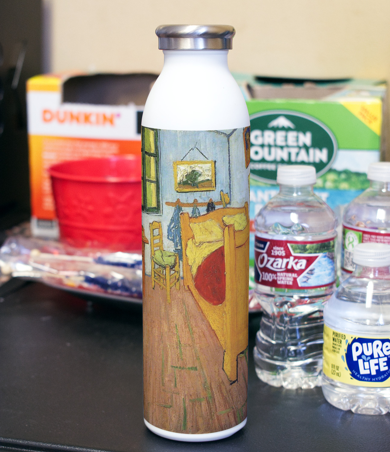 With the double wall insulated construction this bottle will keep drinks cold for 24 hours and hot for 12 hours. The large size allows for a beautiful large artwork space to allow you to make this bottle all your own.