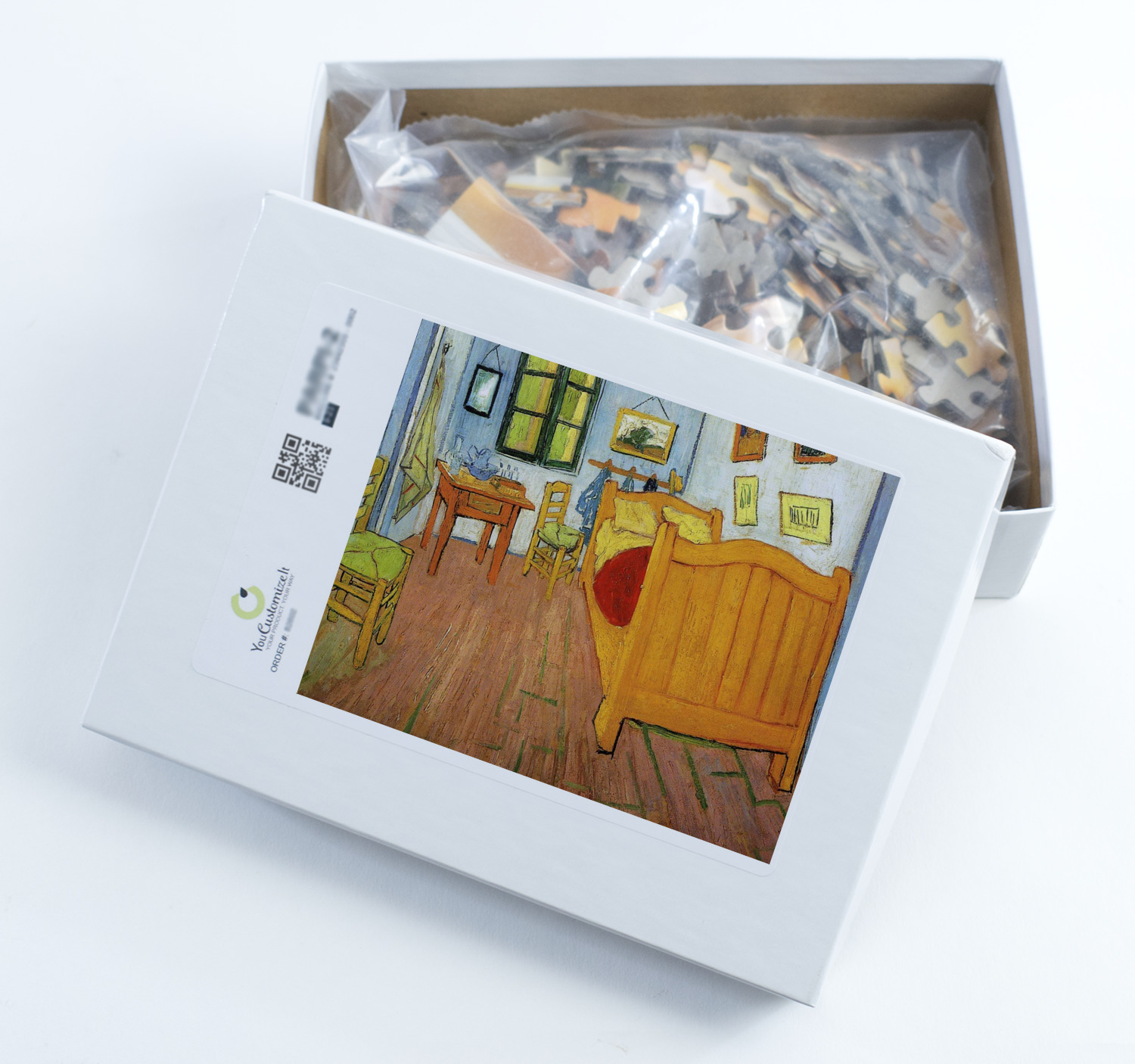 We print our puzzles on thick white chipboard in vibrant colors, then laminate the chipboard and die cut your puzzle. Your jigsaw puzzle is shipped to you in a box with the image of the puzzle on the box.