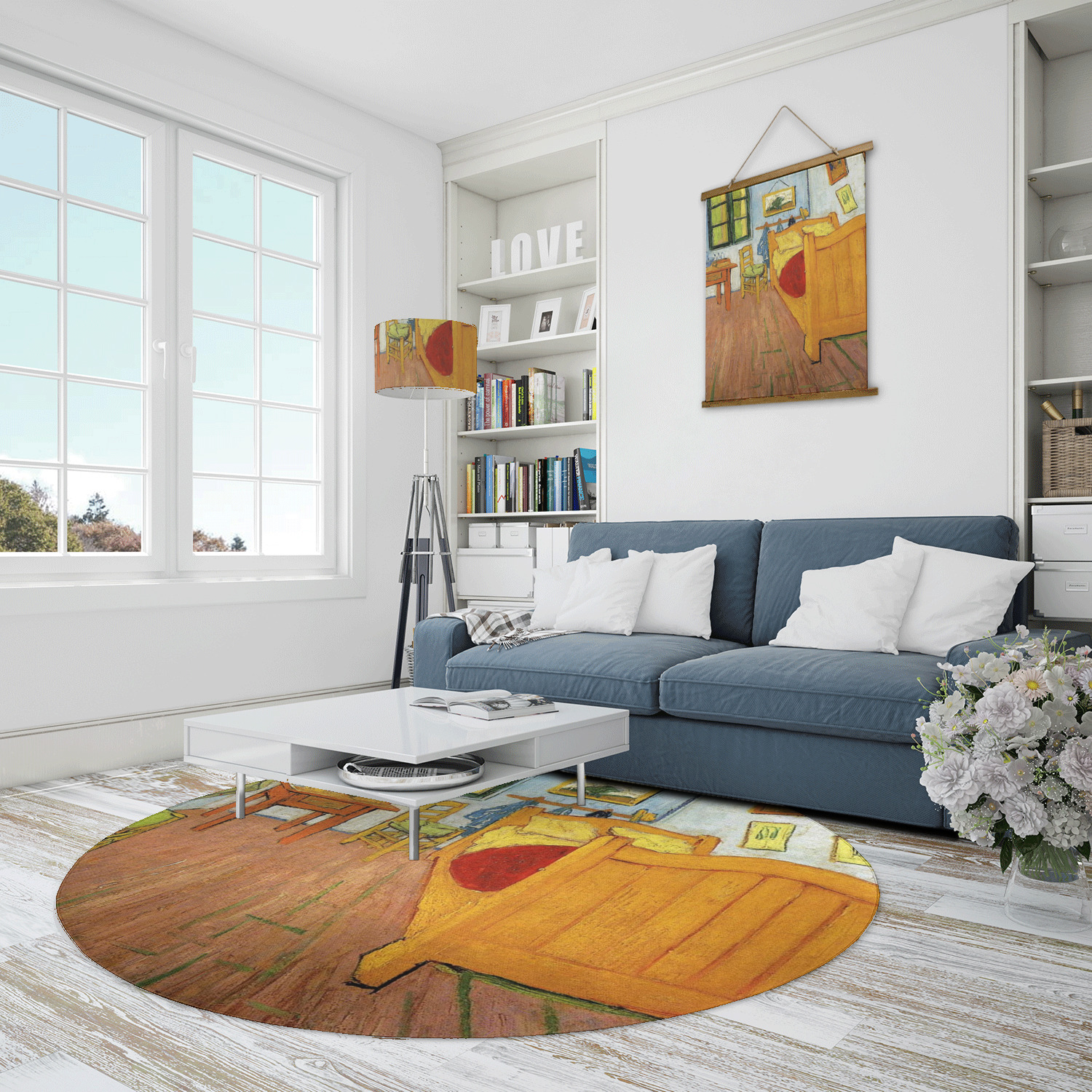 Our custom round area rugs and rectangular area rugs are both velvety soft and smooth, with a short pile, beautiful sewn corners and edges on the poly chenille face. We recommend adding an anti-slip mat under your round area rug to prevent it from sliding when under foot when placed on hard or smooth surfaces.