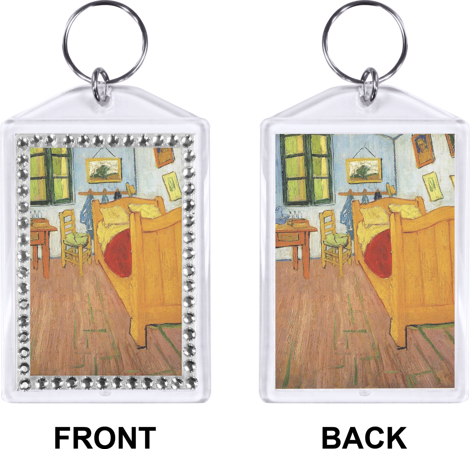 Our personalized keychains have a bold, rectangular shape, outlined by a series of shimmering rhinestones. A metal, split keyring is included with your purchase, and an additional metal hoop allows for attachment of the keychain to the split ring. This unique keychain measures at about 3.75 by 2.5 inches. We print your customized design(s) across both the back and front of this keychain.
