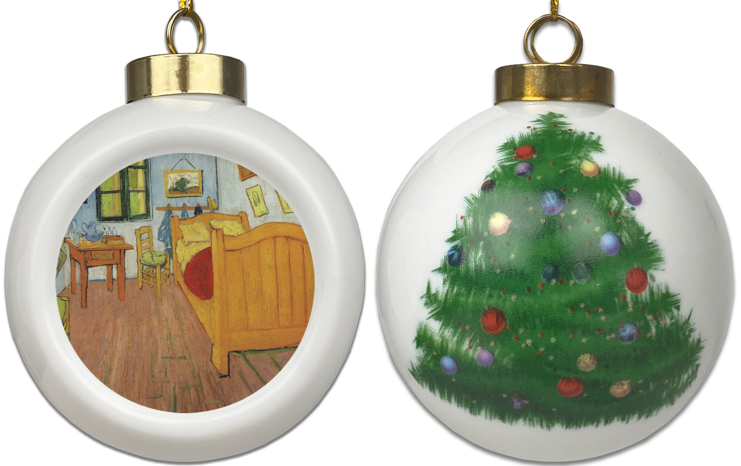 Our Christmas ornaments are a unique ceramic ball shape with a twist as it has a flat face to display your custom design! Select from one of our two design types - Christmas Tree or Poinsettia Garland - to adorn the curved back of your personal design. Each ornament measures 3H x 2.5W x 2D accompanied with a gold string accent for finishing touches to hang on your beautiful Christmas tree!