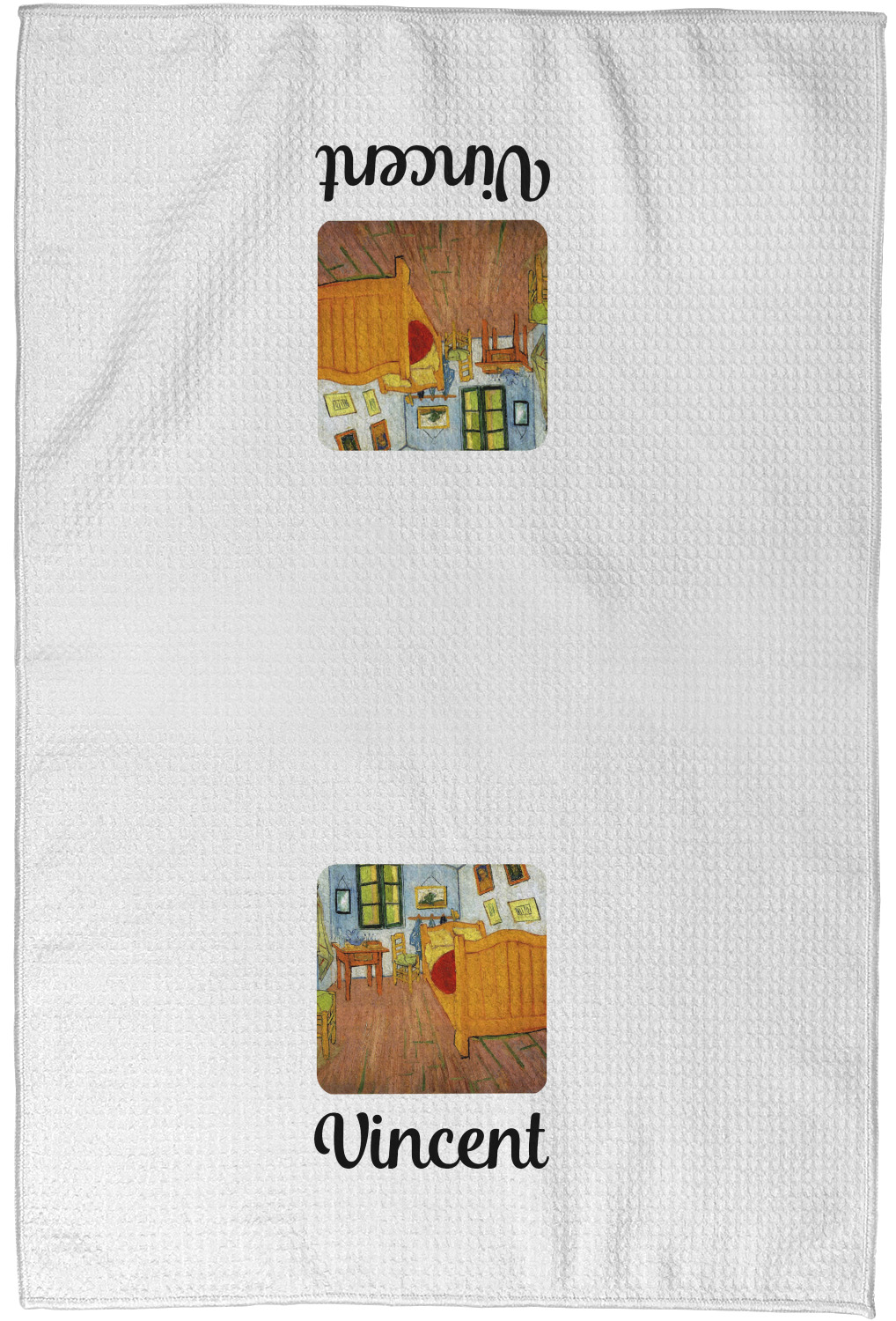 Each waffle weave kitchen towel is approximately 16 x 24 inches with your design printed on one side and the back is white.