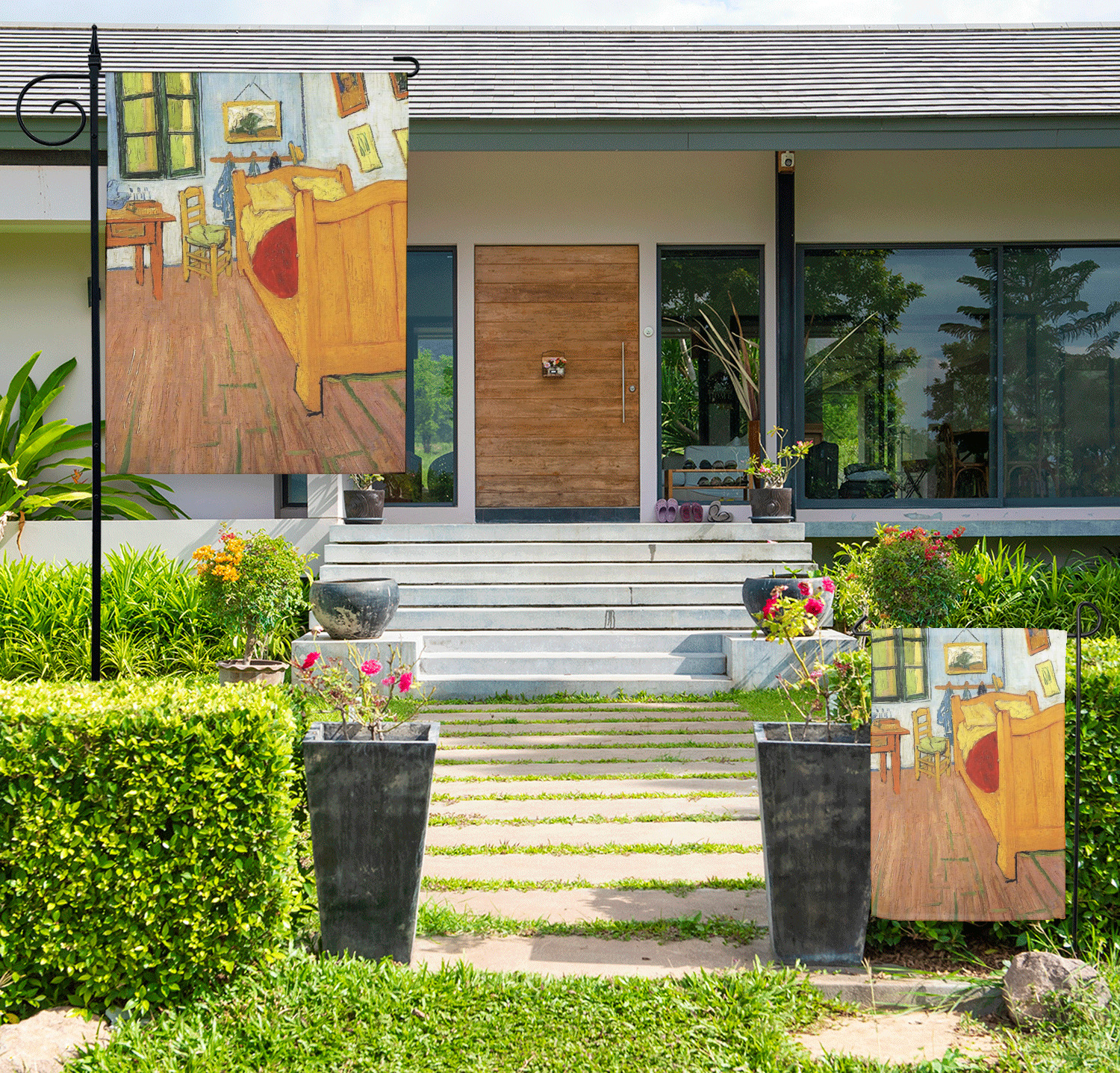 These custom garden flags are made of a durable, double-ply, polyester weave, allowing them to withstand the elements year round. The small flags measure at approximately 12 by 18 inches. The large flags measure out to 28 by 37 inches. You can order these decorative flags with your customization printed on the front only, or the front and back.