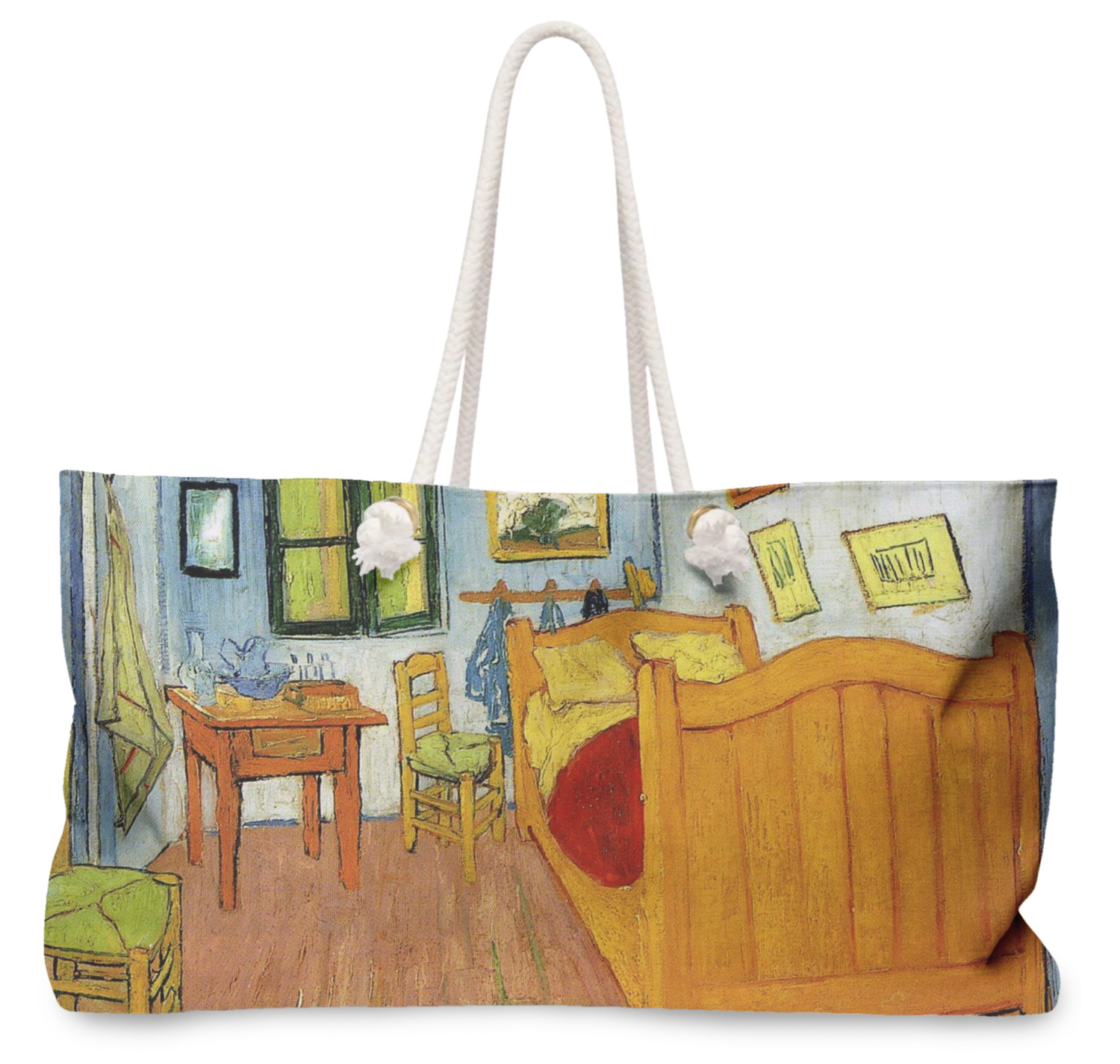 These weekender totes can be customized front and back. The totes are full all over print - so the choice of how background are endless - from beautiful floral or leaf patterns to geometrics or some classic Van Gogh artwork - the possibilities are endless. The totes can also be decorated with photos and logos.
