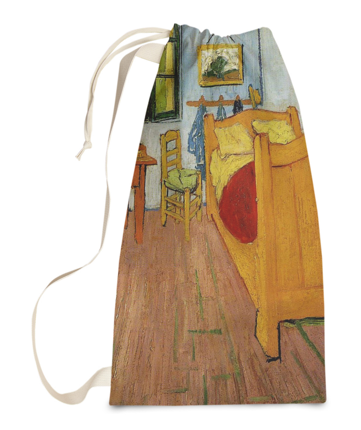 Carry your laundry in style with these customized laundry bags. Available in two sizes, featuring a natural colored woven strap and a cinch cord, these bags hold a lot of clothes or anything else you want to fit in them.