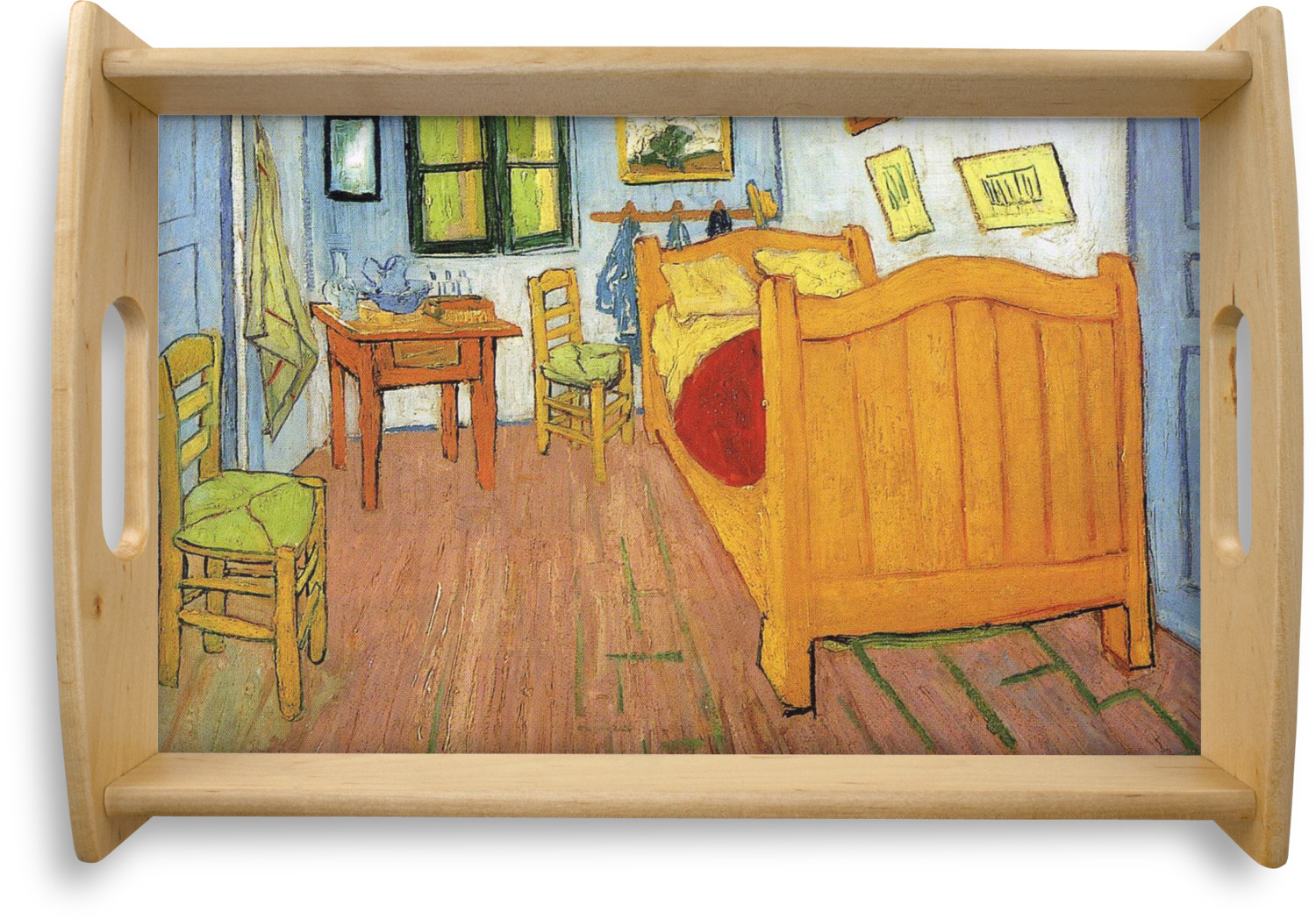 This serving tray with handles features square edges and two rounded sides, creating a very modern look. Each side is fabricated from a beautifully cut, natural wood. The bottom of the interior of the tray displays your customized design in bright, vibrant color. The tray is sold in both a black color and a natural wood look. Each variation of the wood serving tray has two sizes: Small, which is 14" x 10" x 2.25", and Large, which is 19.5" x 13.5" x 2.75".