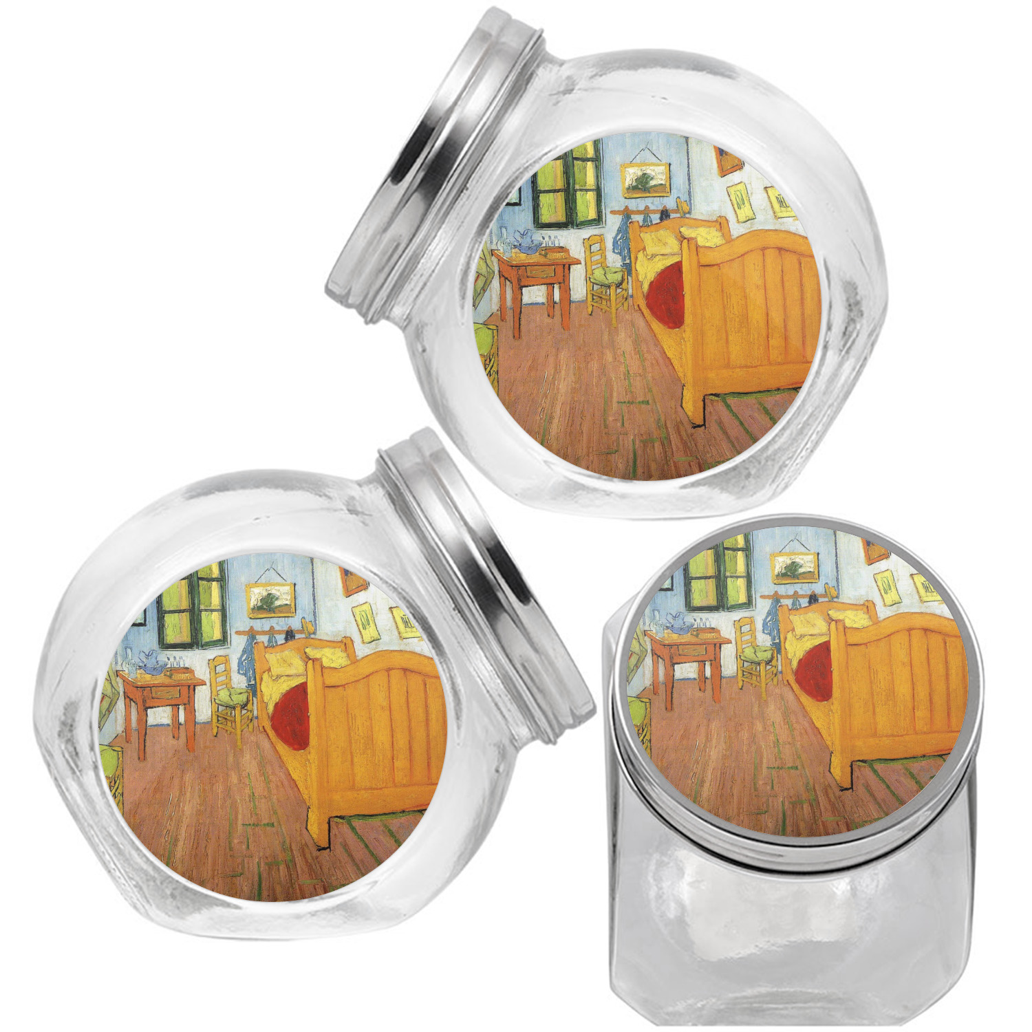 This treat jar is an excellent way to store treats for your favorite canine or feline. Moreover, their delicate, classy appearance makes them a tasteful addition to your countertop's décor. Crafted from clear glass, its unique construction and silver metal, screw-on lid allows for quick and easy access. Three, permanent, vinyl stickers are applied to both sides of the jar and lid, presenting your personalized design. The base of this glass, dog treat jar is 3.4" x 4.75", and the jar stands at 5" tall. Though on the smaller side, this jar is best suited for smaller treats or training treats.