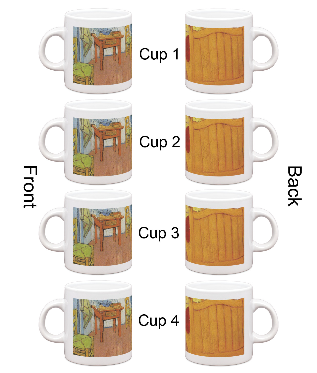 Each of our espresso mugs is a ceramic material sure to keep your drink warm. Personalize one cup for yourself, or order a set of 4! Its the perfect little gift for any coffee lover! We carry two sizes for you to personalize - 3 oz. (approx. 3.25" x 2.325" x 2.625") or 6 oz. (approx. 4" x 2.9" x 2.9"). Our 3 oz. mug is perfect for that single shot espresso while our 6 oz. mug can be your next favorite cappuccino cup holding two shots of espresso!
