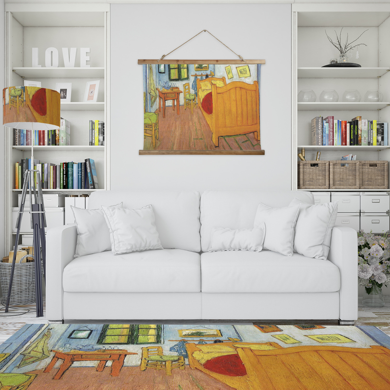 Made in two different orientations - portrait or landscape - both are 26" x 36". Your design is printed on a high quality polyester fabric with hemmed edges. The wood on the top and bottom of the tapestry is 1.25" tall and 0.25" thick and there are two pieces on top and bottom which sandwich the fabric.
