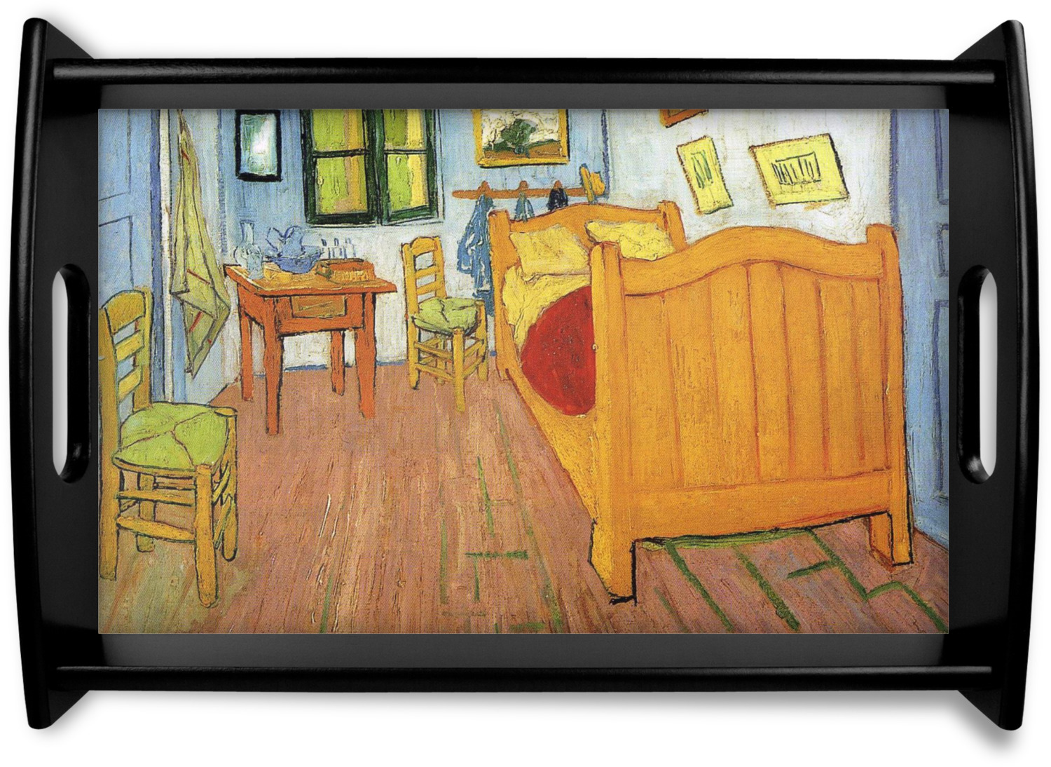 This serving tray with handles features square edges and two rounded sides, creating a very modern look. Each side is fabricated from a beautifully cut, natural wood. The bottom of the interior of the tray displays your customized design in bright, vibrant color. The tray is sold in both a black color and a natural wood look. Each variation of the wood serving tray has two sizes: Small, which is 14" x 10" x 2.25", and Large, which is 19.5" x 13.5" x 2.75".