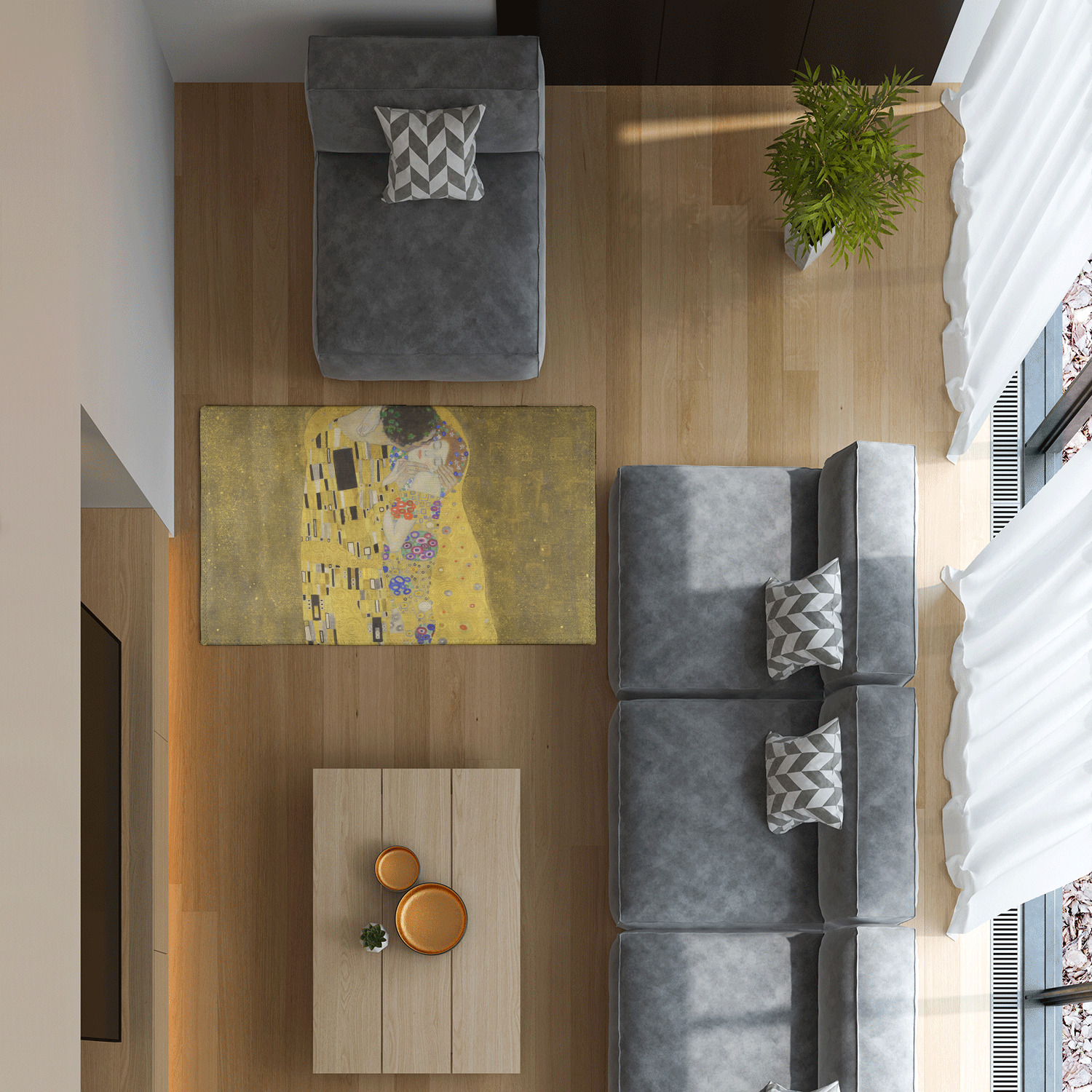 Now you can enjoy this beautiful art on a daily basis. Well not all of it! To put The Kiss (a square) on products, we use as much of the painting as we can on each product. So for a square product like the shower curtain - we use the entire square; however, for other products such as the wristlet (a wide 4x1 rectangle) - you get a small slice of the painting and we use the focal point - which in this case is The Kiss!