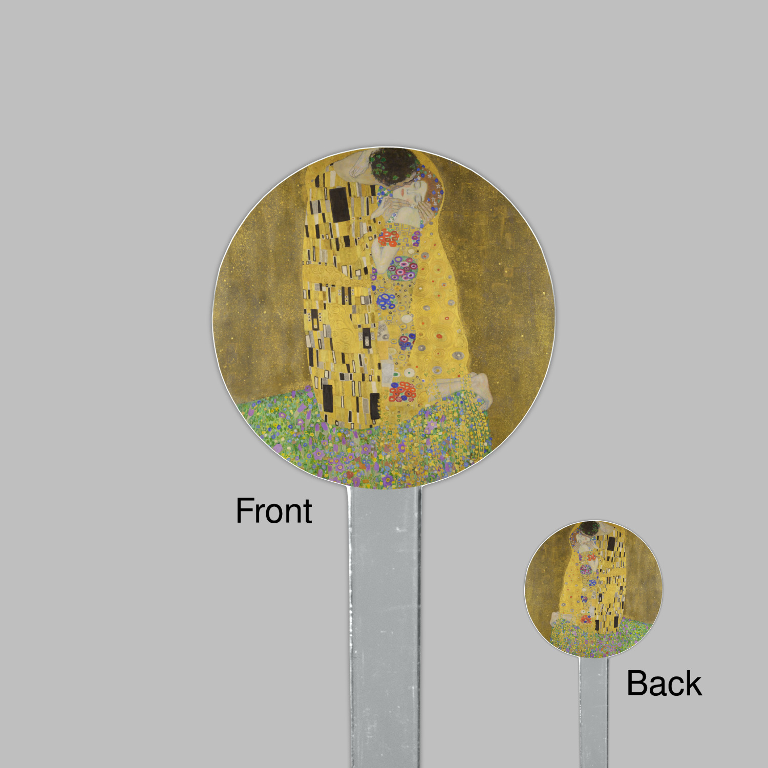 Now you can enjoy this beautiful art on a daily basis. Well not all of it! To put The Kiss (a square) on products, we use as much of the painting as we can on each product. So for a square product like the shower curtain - we use the entire square; however, for other products such as the wristlet (a wide 4x1 rectangle) - you get a small slice of the painting and we use the focal point - which in this case is The Kiss!