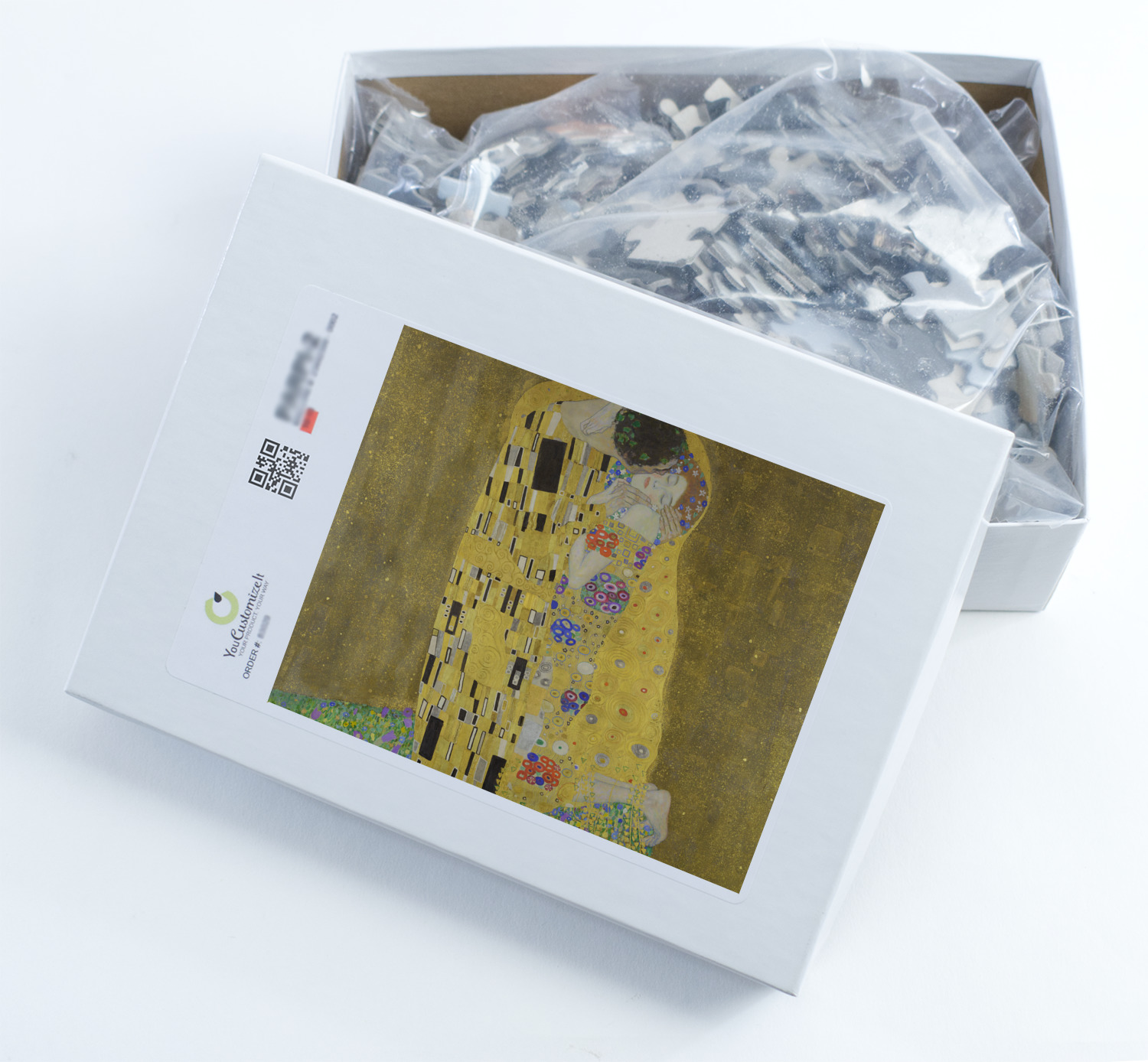 We print our puzzles on thick white chipboard in vibrant colors, then laminate the chipboard and die cut your puzzle. Your jigsaw puzzle is shipped to you in a box with the image of the puzzle on the box.