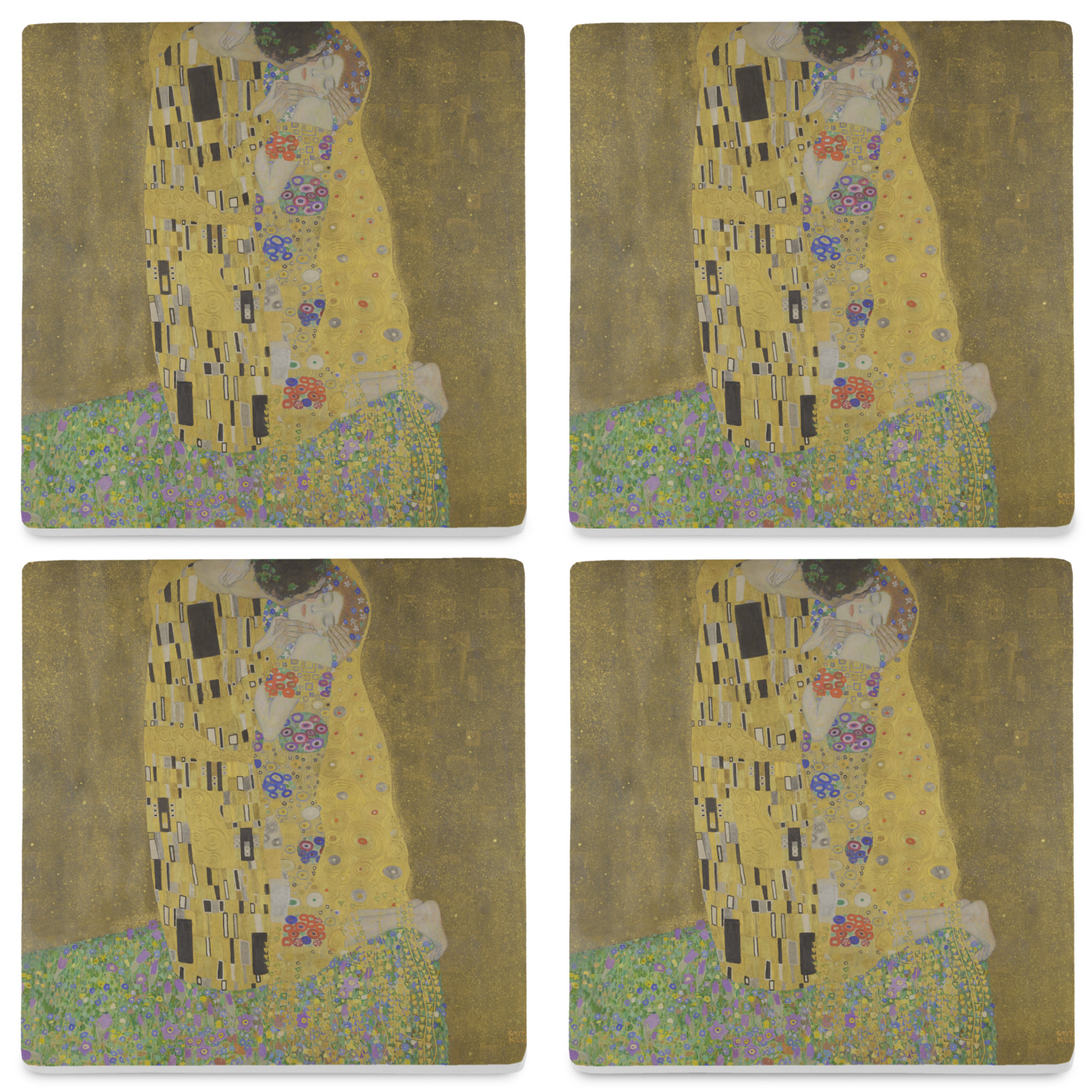 Now you can enjoy this beautiful art on a daily basis. Well not all of it! To put The Kiss (a square) on products, we use as much of the painting as we can on each product. So for a square product like the shower curtain - we use the entire square; however, for other products such as the wristlet (a wide 4x1 rectangle) - you get a small slice of the painting and we use the focal point - which in this case is The Kiss!