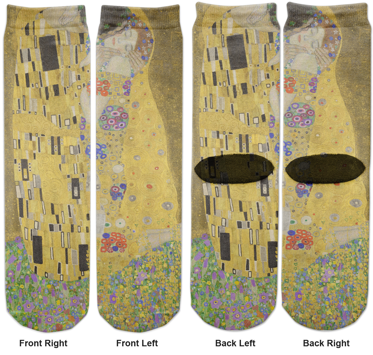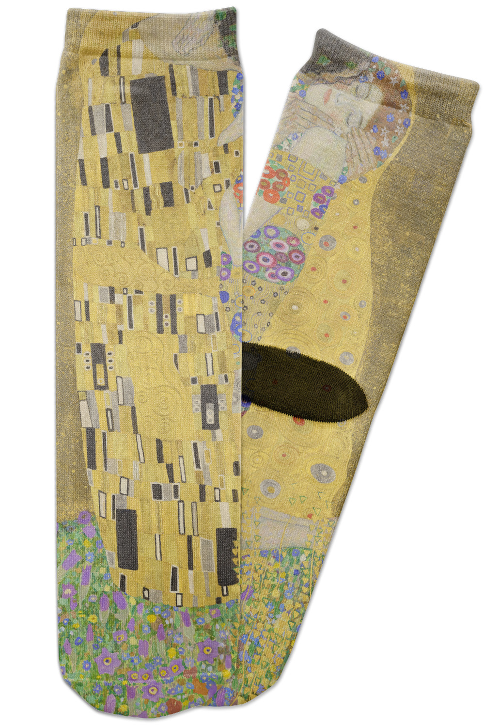 Now you can enjoy this beautiful art on a daily basis. Well not all of it! To put The Kiss (a square) on products, we use as much of the painting as we can on each product. So for a square product like the shower curtain - we use the entire square; however, for other products such as the wristlet (a wide 4x1 rectangle) - you get a small slice of the painting and we use the focal point - which in this case is The Kiss!