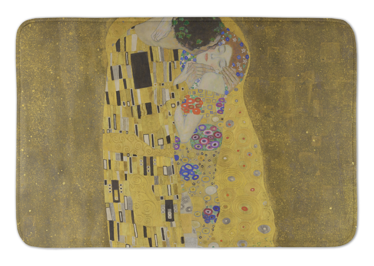 Now you can enjoy this beautiful art on a daily basis. Well not all of it! To put The Kiss (a square) on products, we use as much of the painting as we can on each product. So for a square product like the shower curtain - we use the entire square; however, for other products such as the wristlet (a wide 4x1 rectangle) - you get a small slice of the painting and we use the focal point - which in this case is The Kiss!