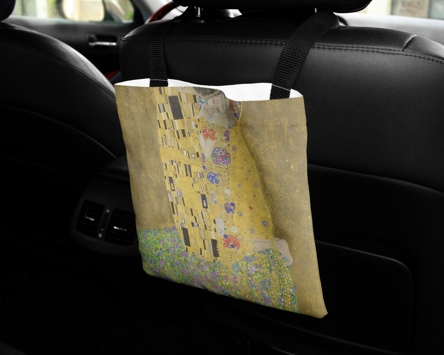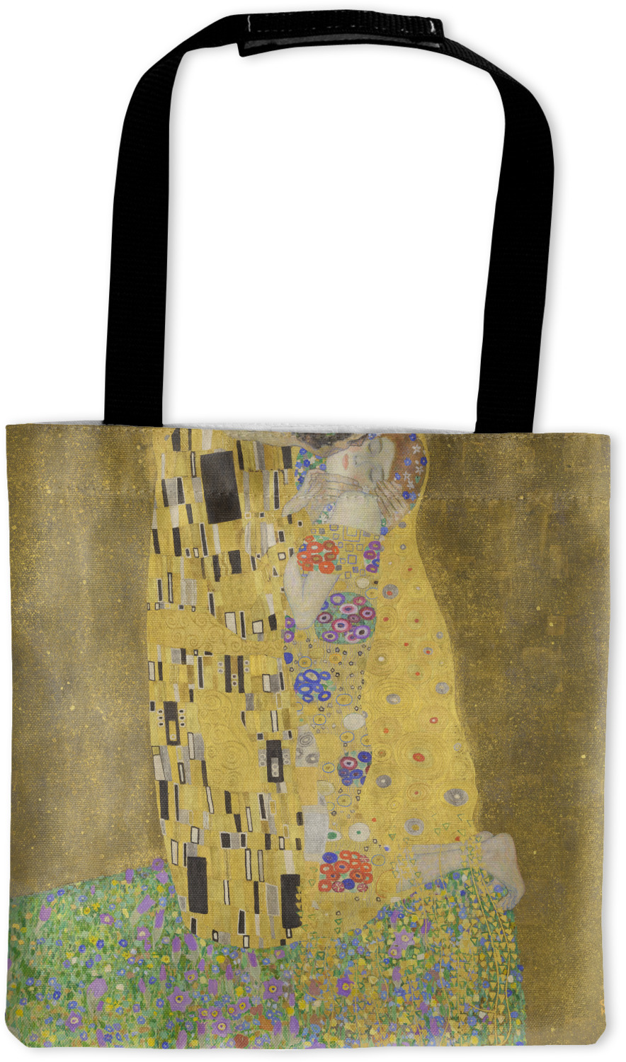 Now you can enjoy this beautiful art on a daily basis. Well not all of it! To put The Kiss (a square) on products, we use as much of the painting as we can on each product. So for a square product like the shower curtain - we use the entire square; however, for other products such as the wristlet (a wide 4x1 rectangle) - you get a small slice of the painting and we use the focal point - which in this case is The Kiss!