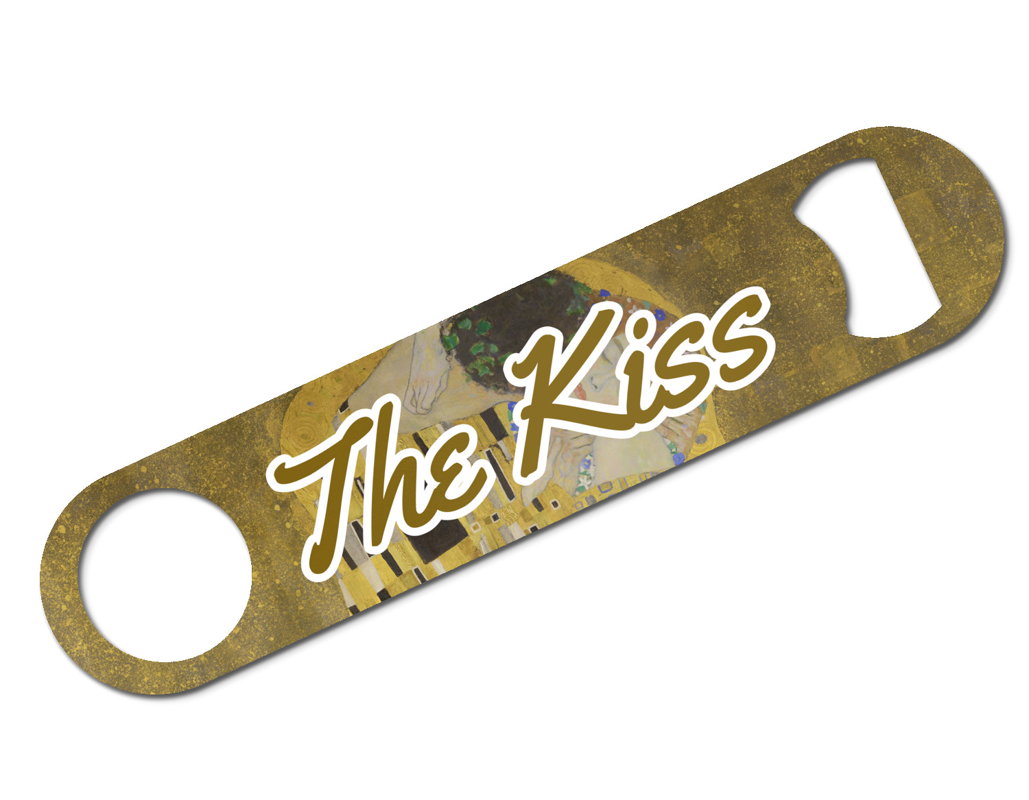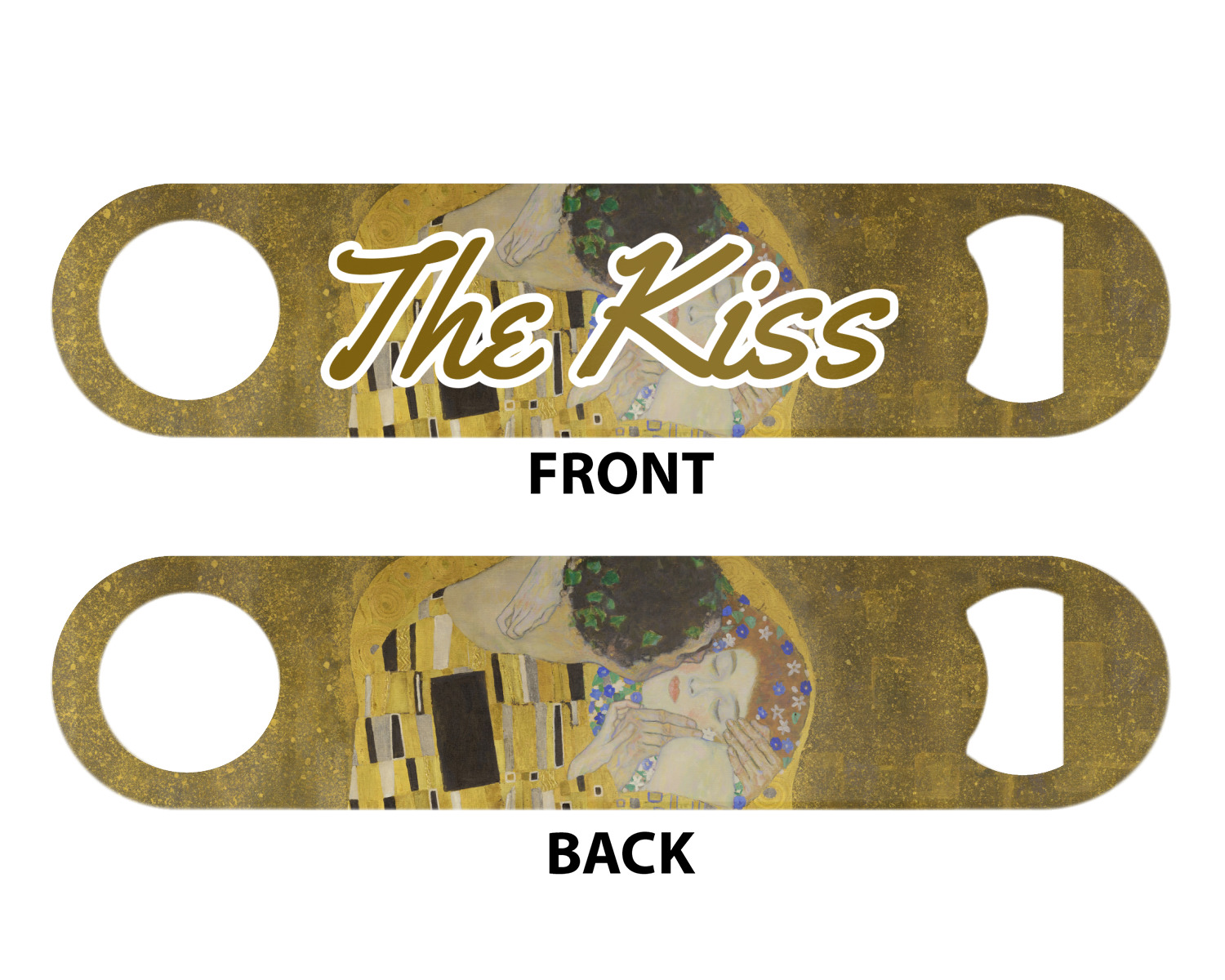 Now you can enjoy this beautiful art on a daily basis. Well not all of it! To put The Kiss (a square) on products, we use as much of the painting as we can on each product. So for a square product like the shower curtain - we use the entire square; however, for other products such as the wristlet (a wide 4x1 rectangle) - you get a small slice of the painting and we use the focal point - which in this case is The Kiss!