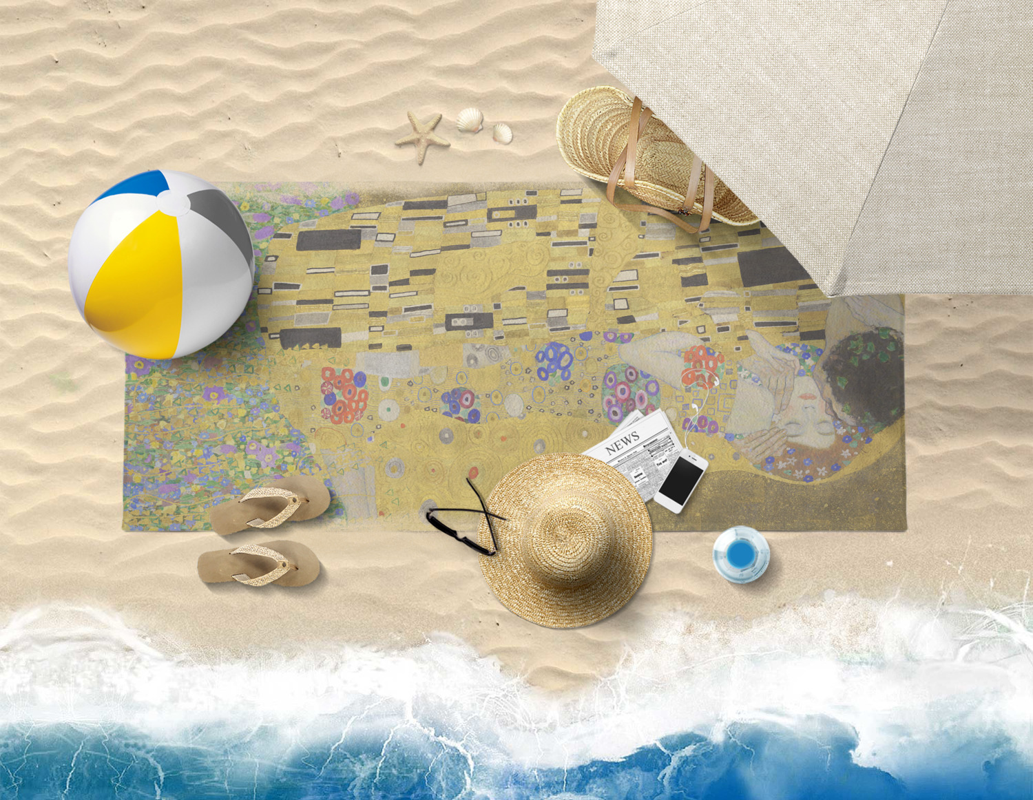 Now you can enjoy this beautiful art on a daily basis. Well not all of it! To put The Kiss (a square) on products, we use as much of the painting as we can on each product. So for a square product like the shower curtain - we use the entire square; however, for other products such as the wristlet (a wide 4x1 rectangle) - you get a small slice of the painting and we use the focal point - which in this case is The Kiss!