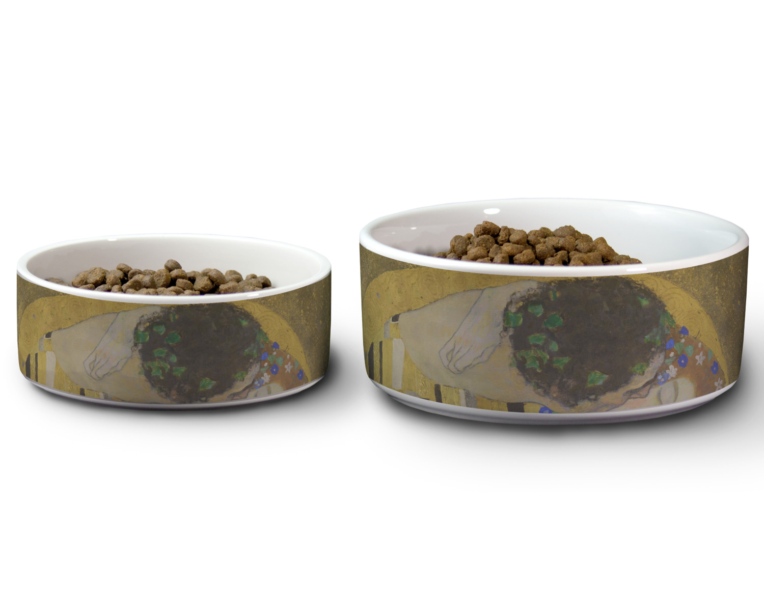 We carry these custom dog bowls in two available sizes: medium and large.The medium is 6 inches in diameter and 2.5 inches tall, and can therefore suit pets who eat up to 2.5 cups of food per meal. The large pet bowl is 7 inches in diameter and 3 inches tall, and suits pets who require up to 4.5 cups of food per meal.