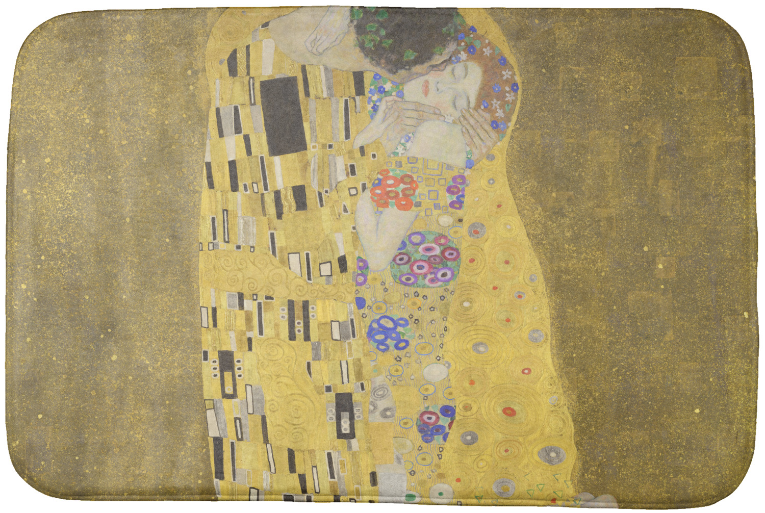 Now you can enjoy this beautiful art on a daily basis. Well not all of it! To put The Kiss (a square) on products, we use as much of the painting as we can on each product. So for a square product like the shower curtain - we use the entire square; however, for other products such as the wristlet (a wide 4x1 rectangle) - you get a small slice of the painting and we use the focal point - which in this case is The Kiss!