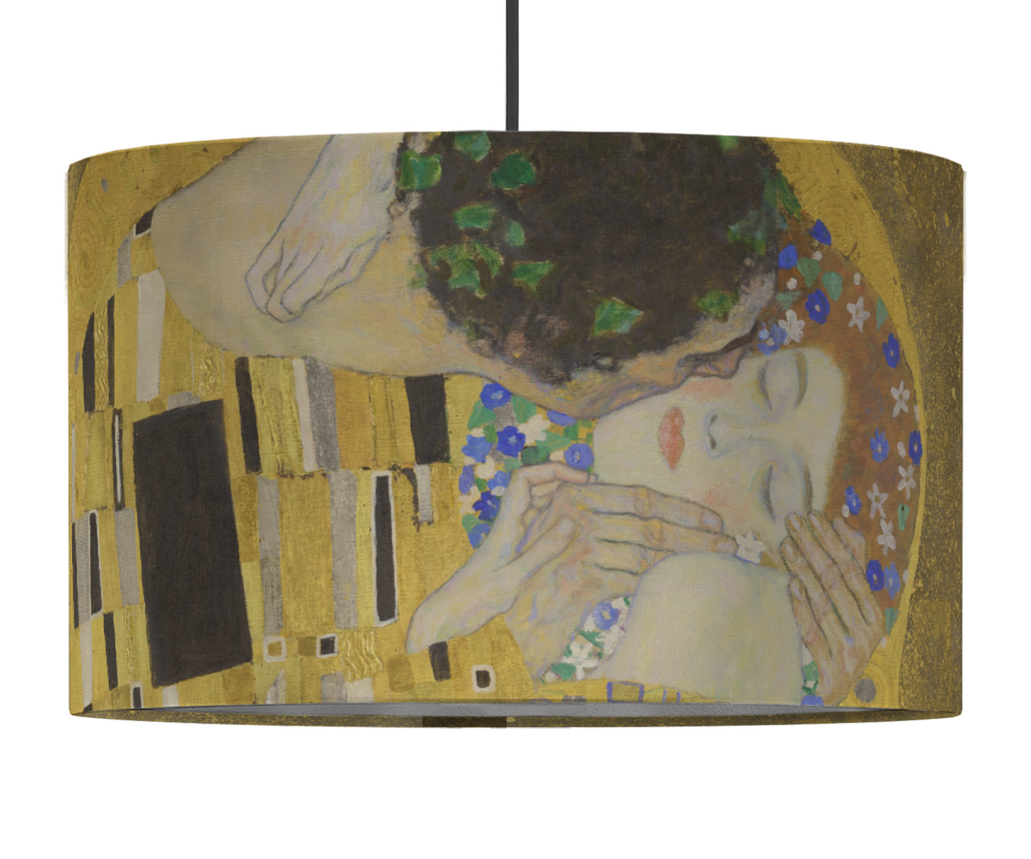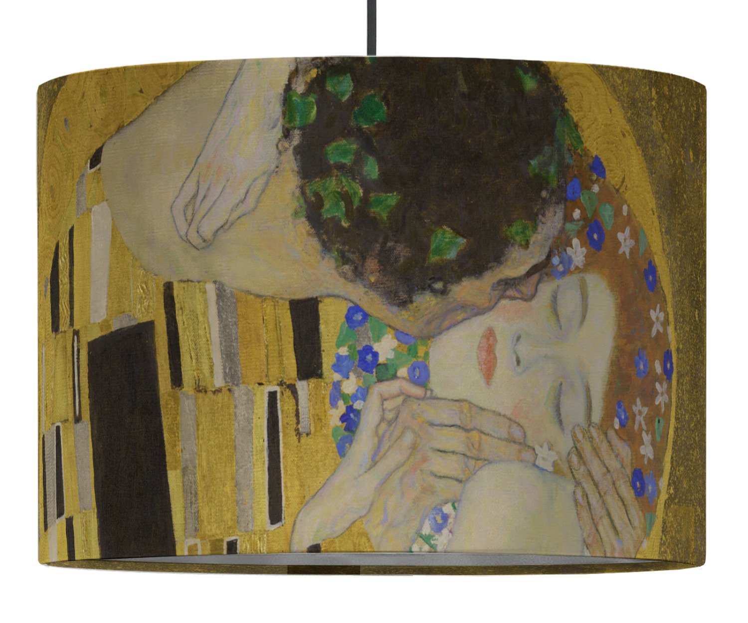 Now you can enjoy this beautiful art on a daily basis. Well not all of it! To put The Kiss (a square) on products, we use as much of the painting as we can on each product. So for a square product like the shower curtain - we use the entire square; however, for other products such as the wristlet (a wide 4x1 rectangle) - you get a small slice of the painting and we use the focal point - which in this case is The Kiss!