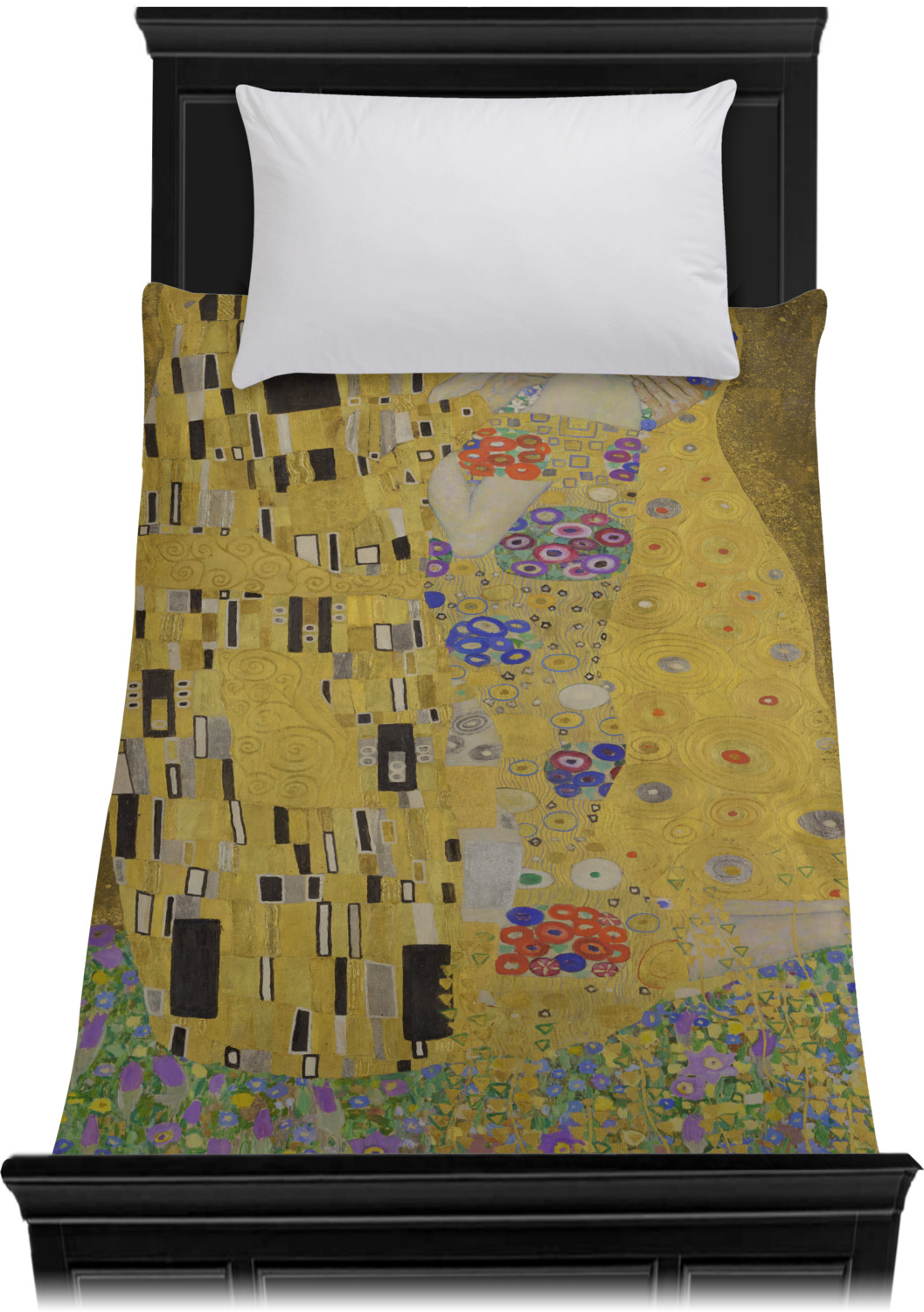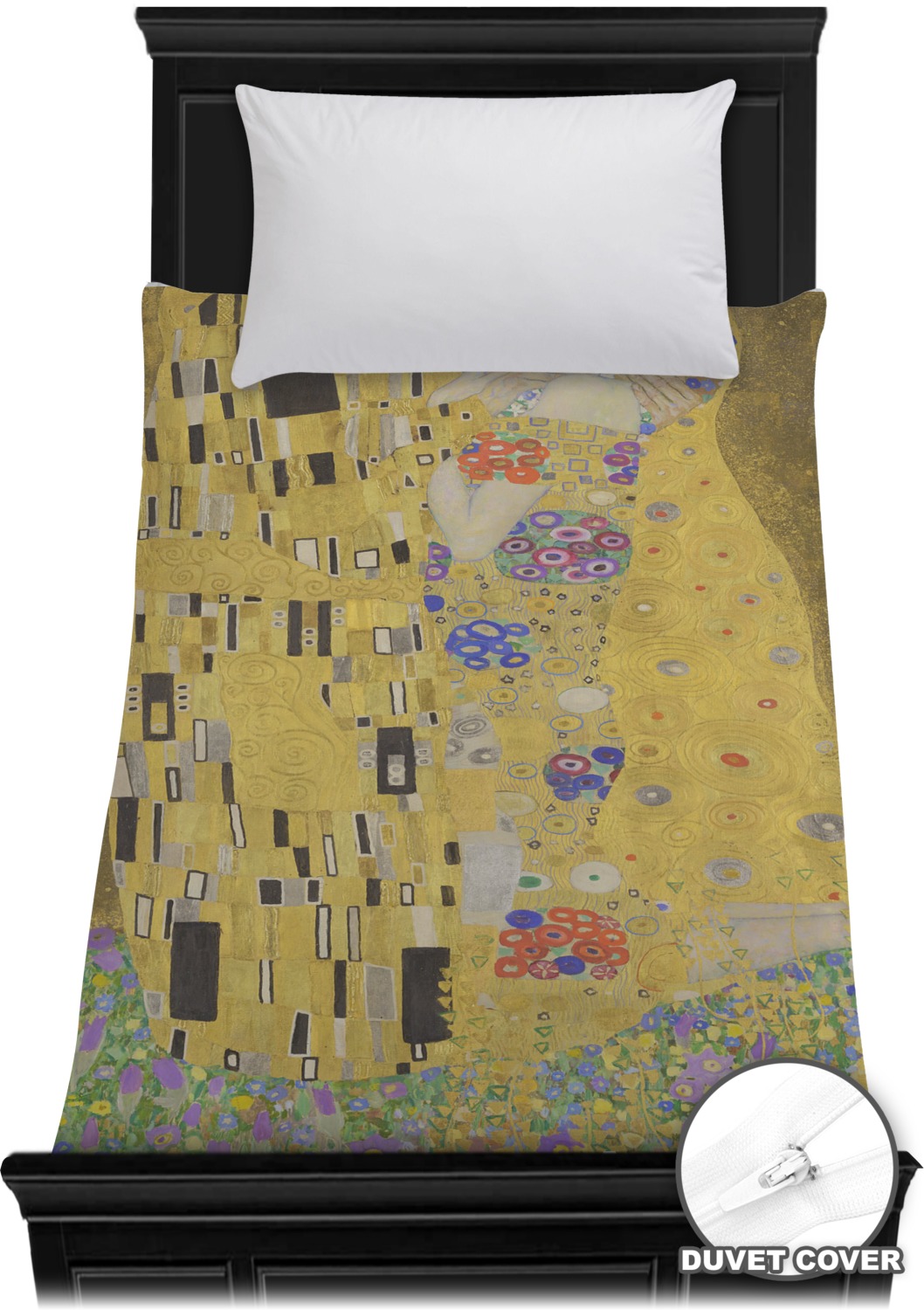 Now you can enjoy this beautiful art on a daily basis. Well not all of it! To put The Kiss (a square) on products, we use as much of the painting as we can on each product. So for a square product like the shower curtain - we use the entire square; however, for other products such as the wristlet (a wide 4x1 rectangle) - you get a small slice of the painting and we use the focal point - which in this case is The Kiss!