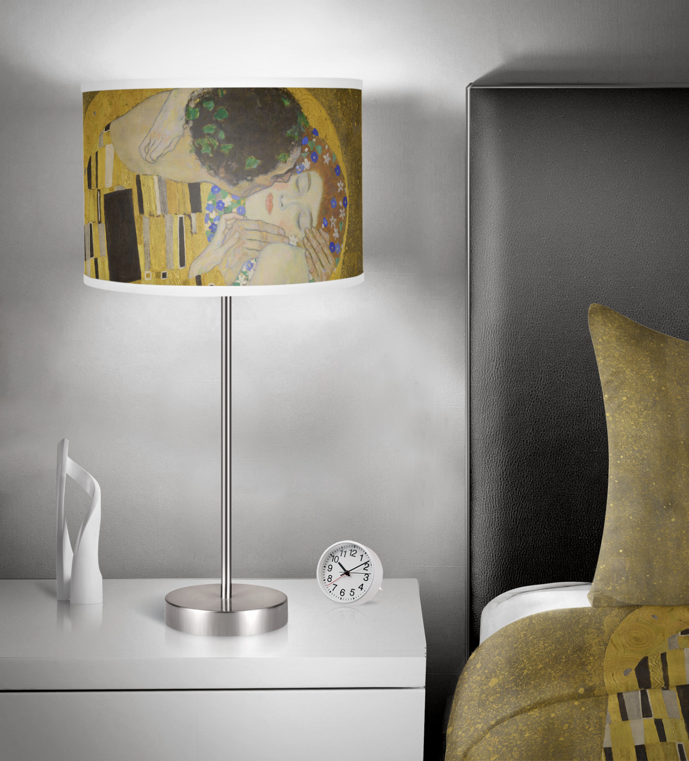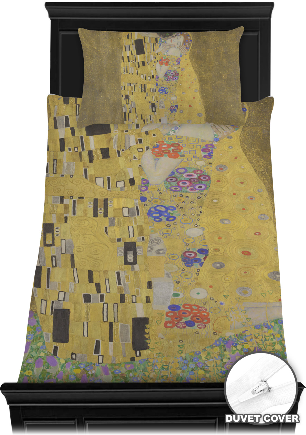 Now you can enjoy this beautiful art on a daily basis. Well not all of it! To put The Kiss (a square) on products, we use as much of the painting as we can on each product. So for a square product like the shower curtain - we use the entire square; however, for other products such as the wristlet (a wide 4x1 rectangle) - you get a small slice of the painting and we use the focal point - which in this case is The Kiss!