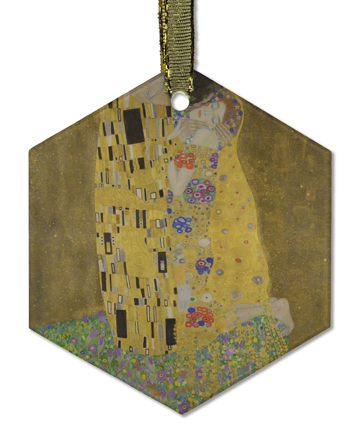 Now you can enjoy this beautiful art on a daily basis. Well not all of it! To put The Kiss (a square) on products, we use as much of the painting as we can on each product. So for a square product like the shower curtain - we use the entire square; however, for other products such as the wristlet (a wide 4x1 rectangle) - you get a small slice of the painting and we use the focal point - which in this case is The Kiss!