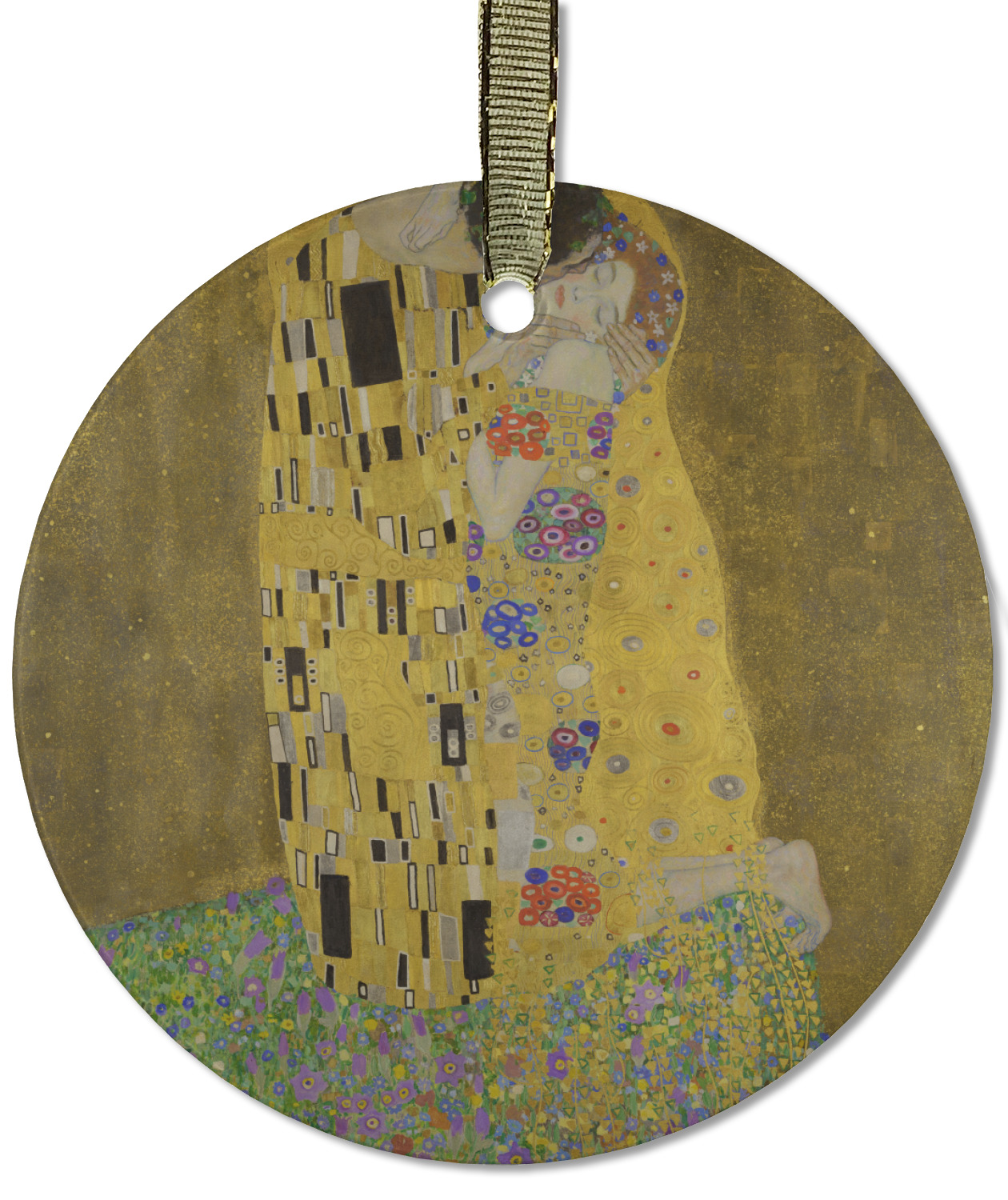 Now you can enjoy this beautiful art on a daily basis. Well not all of it! To put The Kiss (a square) on products, we use as much of the painting as we can on each product. So for a square product like the shower curtain - we use the entire square; however, for other products such as the wristlet (a wide 4x1 rectangle) - you get a small slice of the painting and we use the focal point - which in this case is The Kiss!