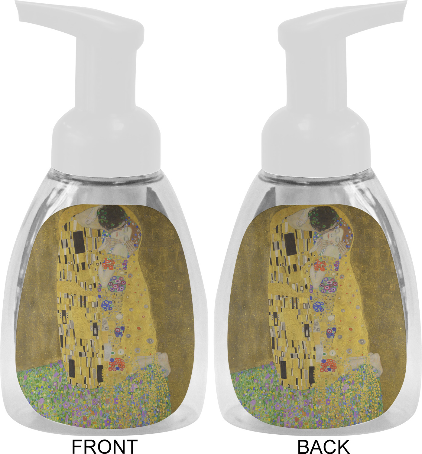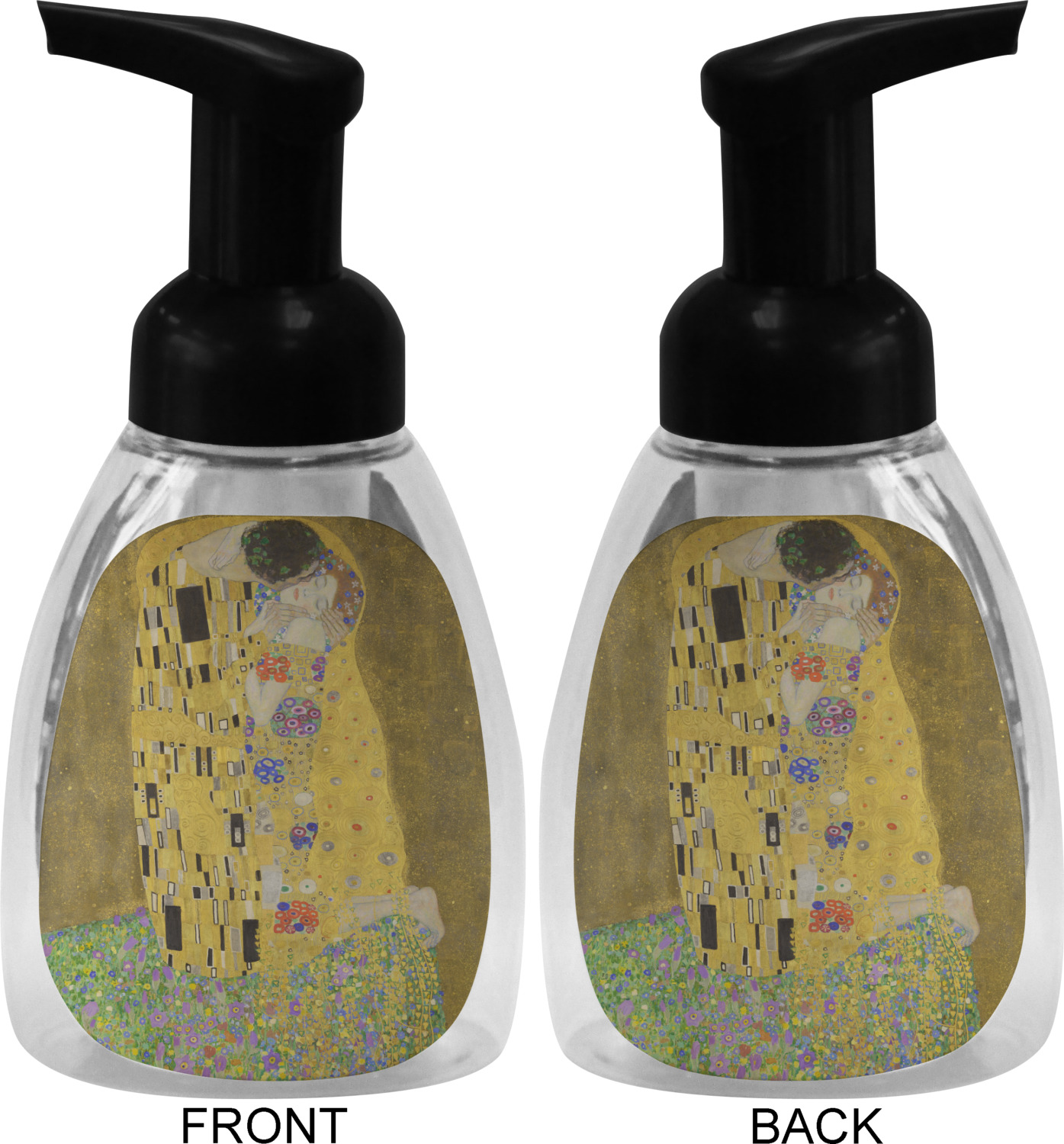 This soap dispenser is made of a robust plastic and has a clear base. The included soap pump is available in black or white color. This dispenser is 6.5 inches tall, 3 inches wide, and 2 inches deep. We display your customized designs on the front and back sides of these foaming hand soap dispensers.