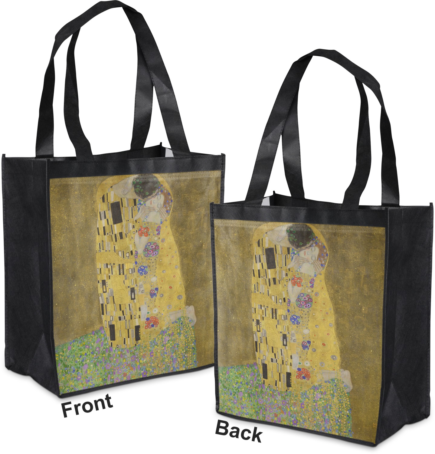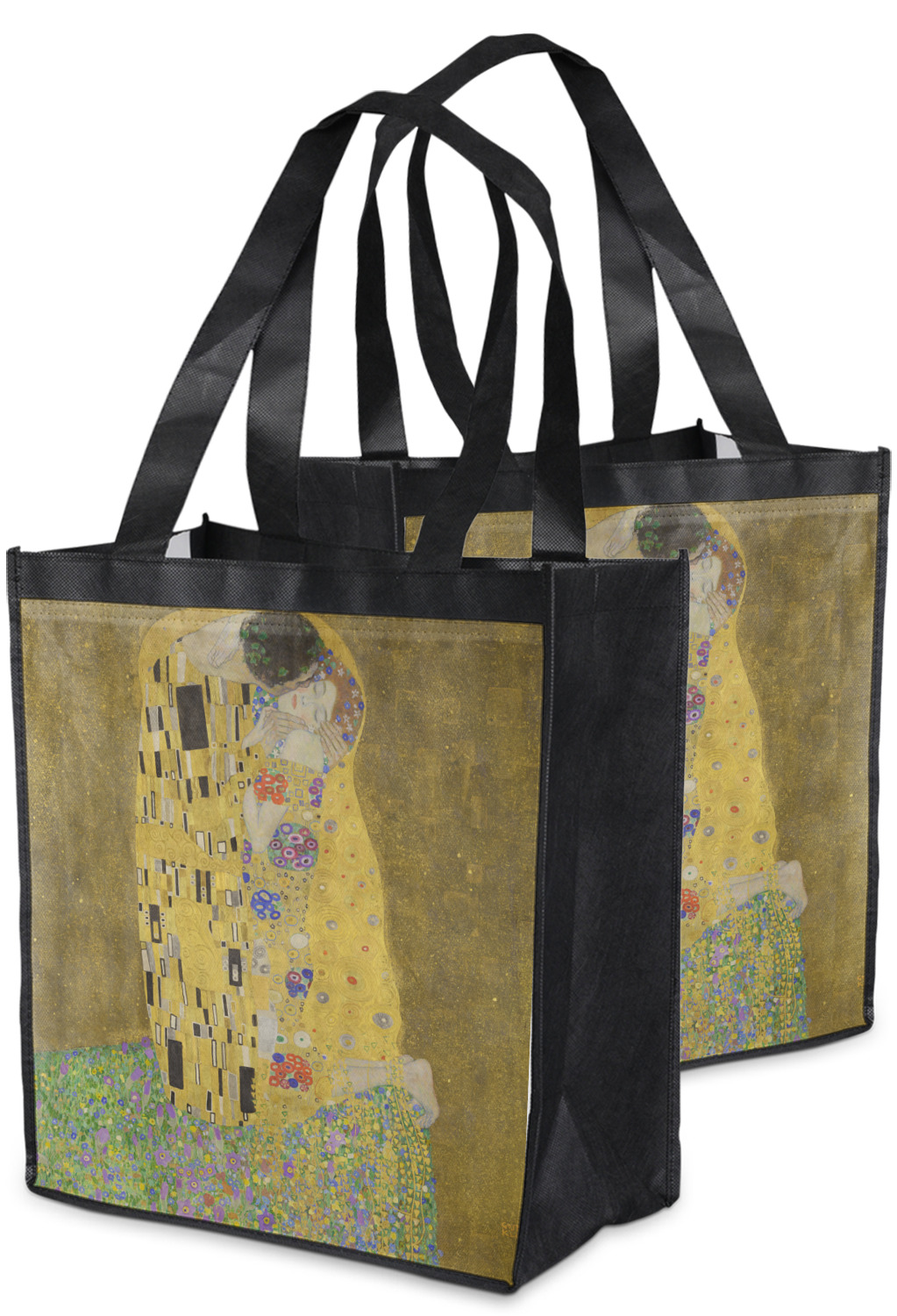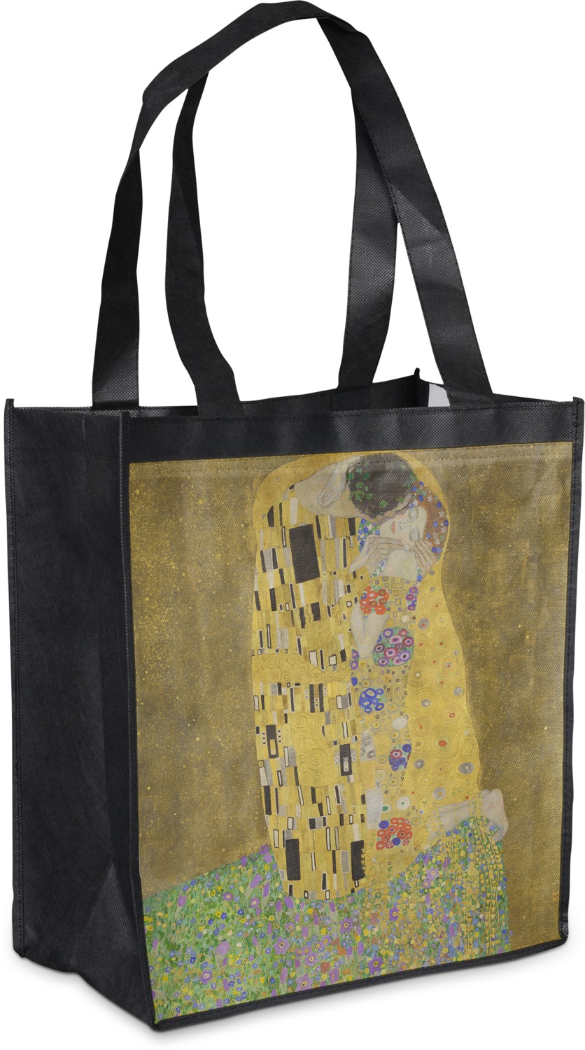 Now you can enjoy this beautiful art on a daily basis. Well not all of it! To put The Kiss (a square) on products, we use as much of the painting as we can on each product. So for a square product like the shower curtain - we use the entire square; however, for other products such as the wristlet (a wide 4x1 rectangle) - you get a small slice of the painting and we use the focal point - which in this case is The Kiss!