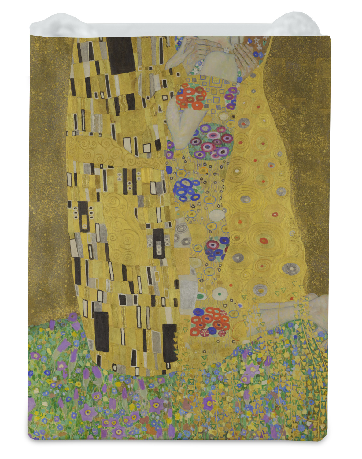 Now you can enjoy this beautiful art on a daily basis. Well not all of it! To put The Kiss (a square) on products, we use as much of the painting as we can on each product. So for a square product like the shower curtain - we use the entire square; however, for other products such as the wristlet (a wide 4x1 rectangle) - you get a small slice of the painting and we use the focal point - which in this case is The Kiss!