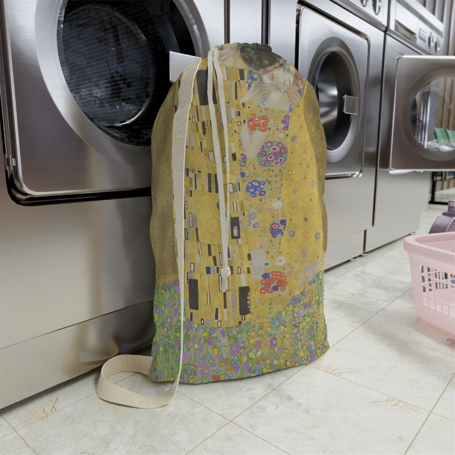 Now you can enjoy this beautiful art on a daily basis. Well not all of it! To put The Kiss (a square) on products, we use as much of the painting as we can on each product. So for a square product like the shower curtain - we use the entire square; however, for other products such as the wristlet (a wide 4x1 rectangle) - you get a small slice of the painting and we use the focal point - which in this case is The Kiss!