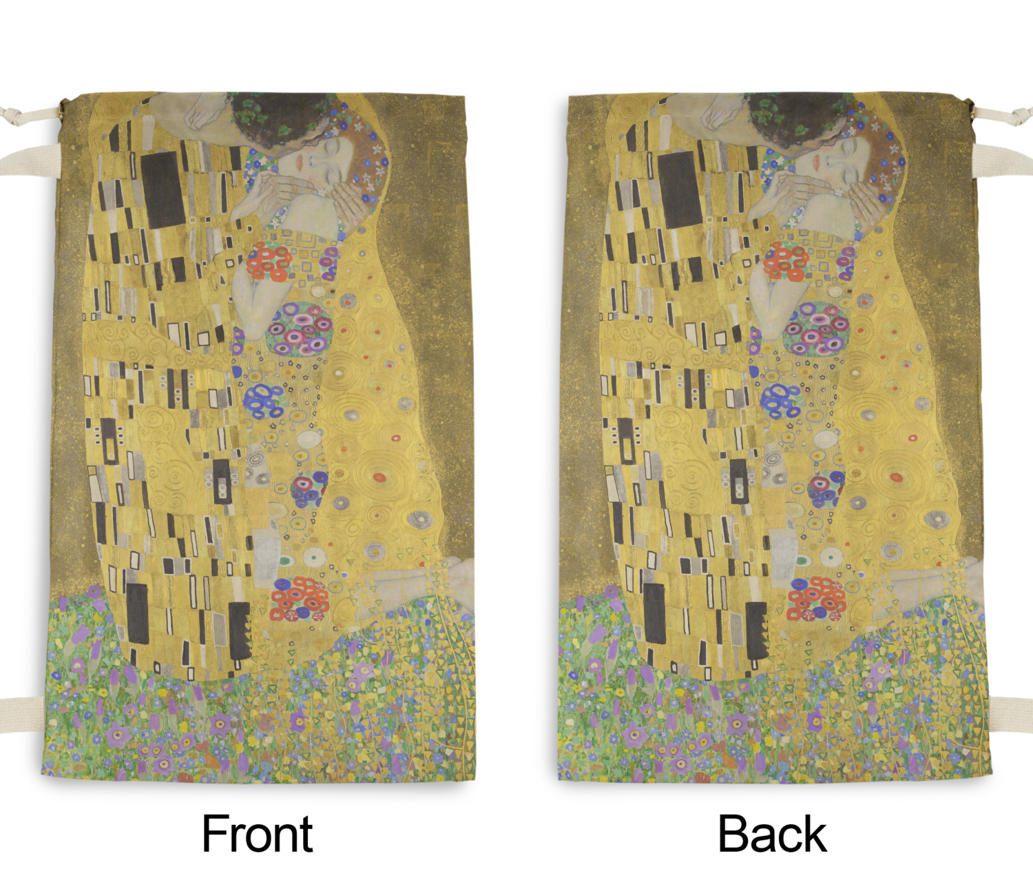 Now you can enjoy this beautiful art on a daily basis. Well not all of it! To put The Kiss (a square) on products, we use as much of the painting as we can on each product. So for a square product like the shower curtain - we use the entire square; however, for other products such as the wristlet (a wide 4x1 rectangle) - you get a small slice of the painting and we use the focal point - which in this case is The Kiss!