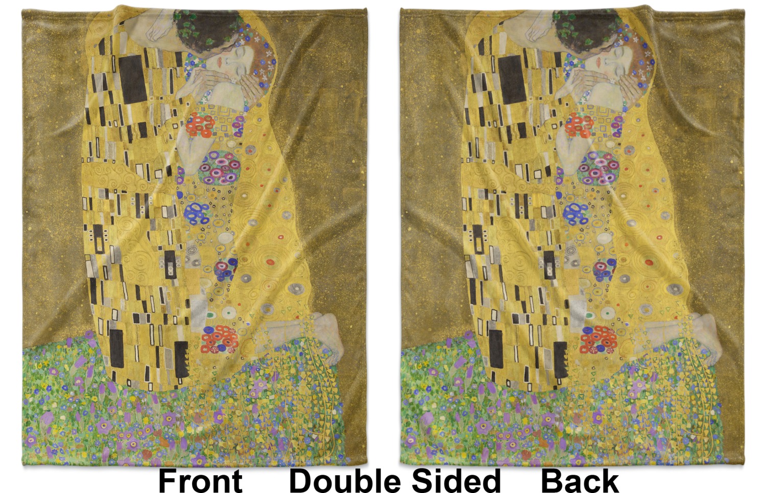 The Kiss (Lovers) was painted by the Austrian Symbolist painter Gustav Klimt between 1907 and 1908, the high-point of his "Golden Period", when he painted a number of works in a similar gilded style. A perfect square, the canvas depicts a couple embracing, their bodies entwined in elaborate robes decorated in a style influenced by both linear constructs of the contemporary Art Nouveau style and the organic forms of the earlier Arts and Crafts movement. The work is composed of oil paint with applied layers of gold leaf, an aspect that gives it its strikingly modern, yet evocative appearance. It is a symbol of Viennese Art Nouveau and is considered Klimt's most popular work.(source: Wikipedia)