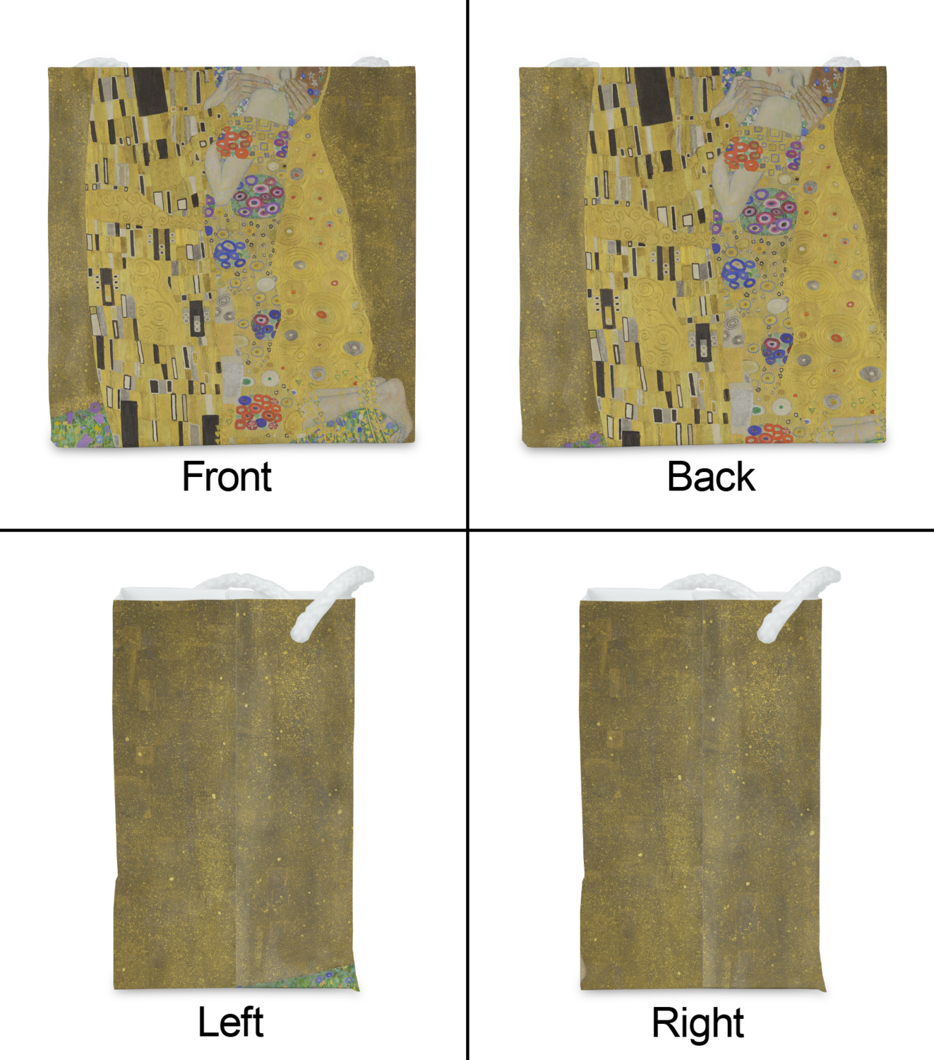 Now you can enjoy this beautiful art on a daily basis. Well not all of it! To put The Kiss (a square) on products, we use as much of the painting as we can on each product. So for a square product like the shower curtain - we use the entire square; however, for other products such as the wristlet (a wide 4x1 rectangle) - you get a small slice of the painting and we use the focal point - which in this case is The Kiss!
