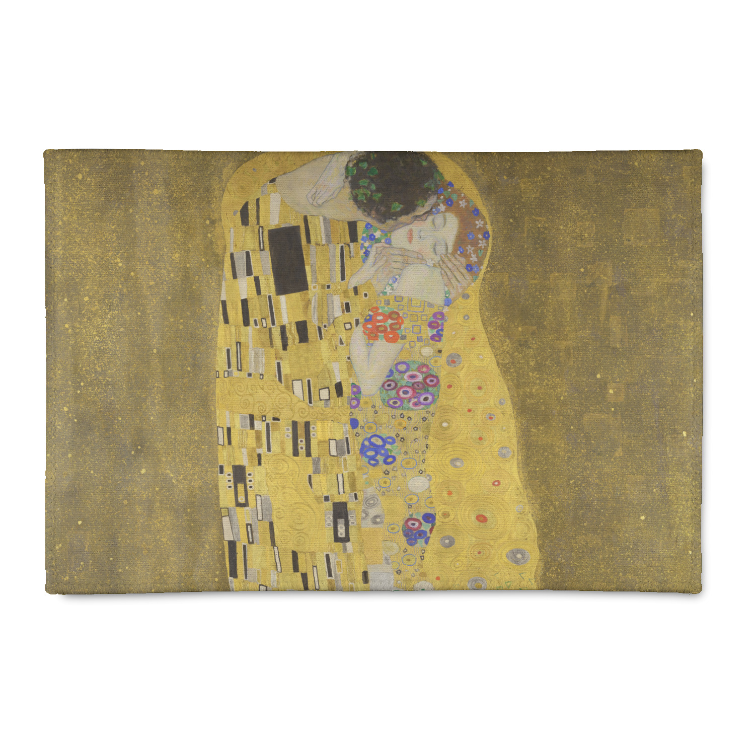Now you can enjoy this beautiful art on a daily basis. Well not all of it! To put The Kiss (a square) on products, we use as much of the painting as we can on each product. So for a square product like the shower curtain - we use the entire square; however, for other products such as the wristlet (a wide 4x1 rectangle) - you get a small slice of the painting and we use the focal point - which in this case is The Kiss!