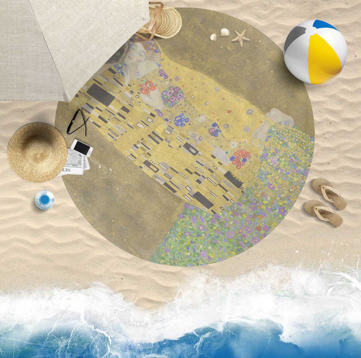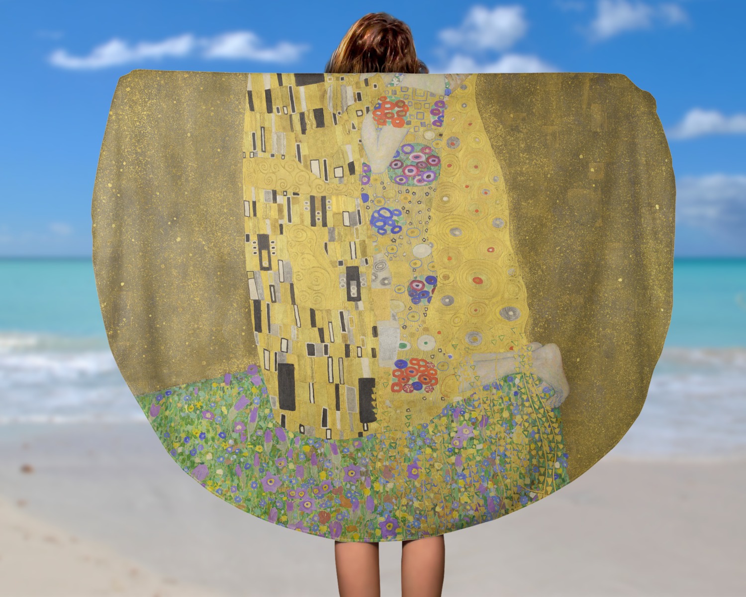 Now you can enjoy this beautiful art on a daily basis. Well not all of it! To put The Kiss (a square) on products, we use as much of the painting as we can on each product. So for a square product like the shower curtain - we use the entire square; however, for other products such as the wristlet (a wide 4x1 rectangle) - you get a small slice of the painting and we use the focal point - which in this case is The Kiss!