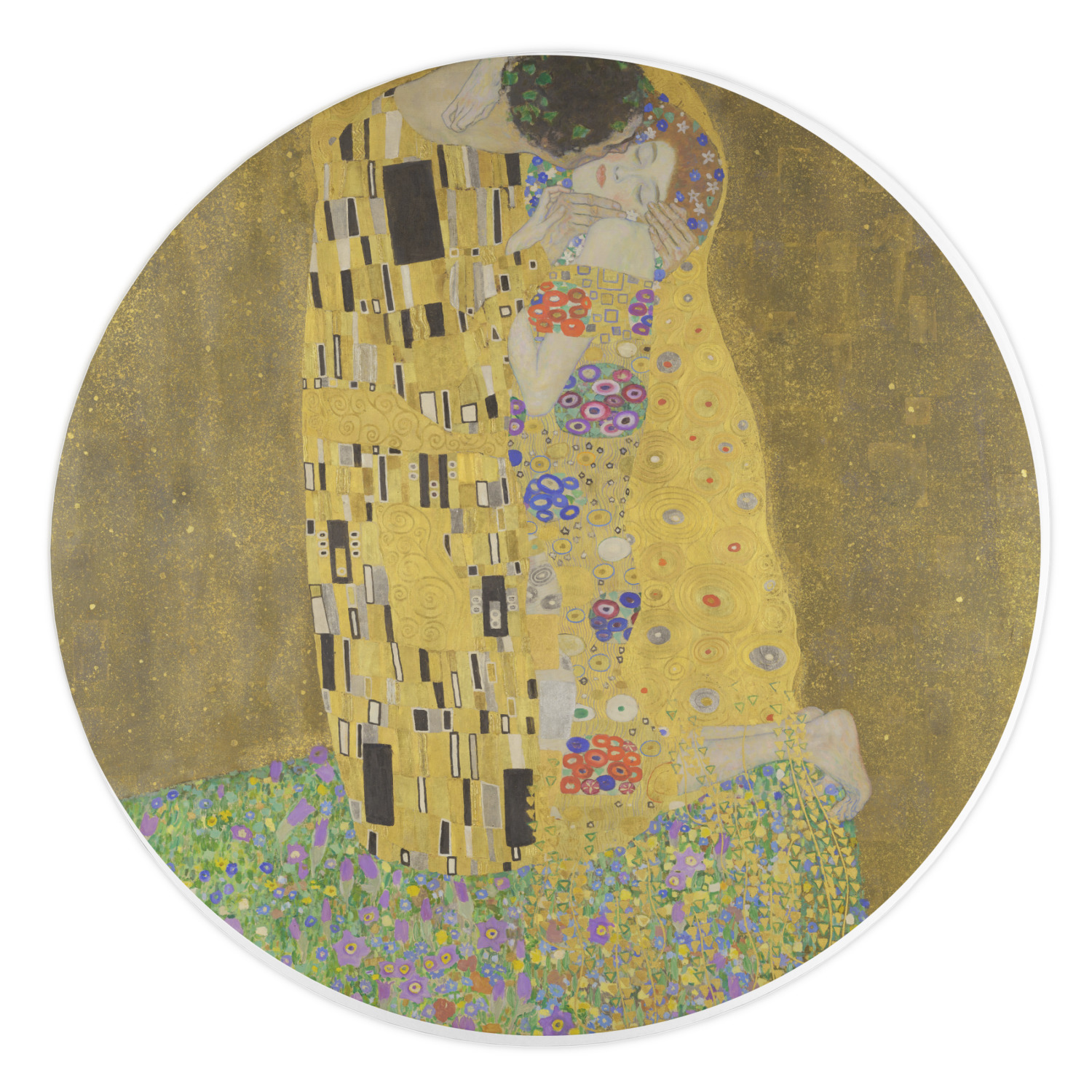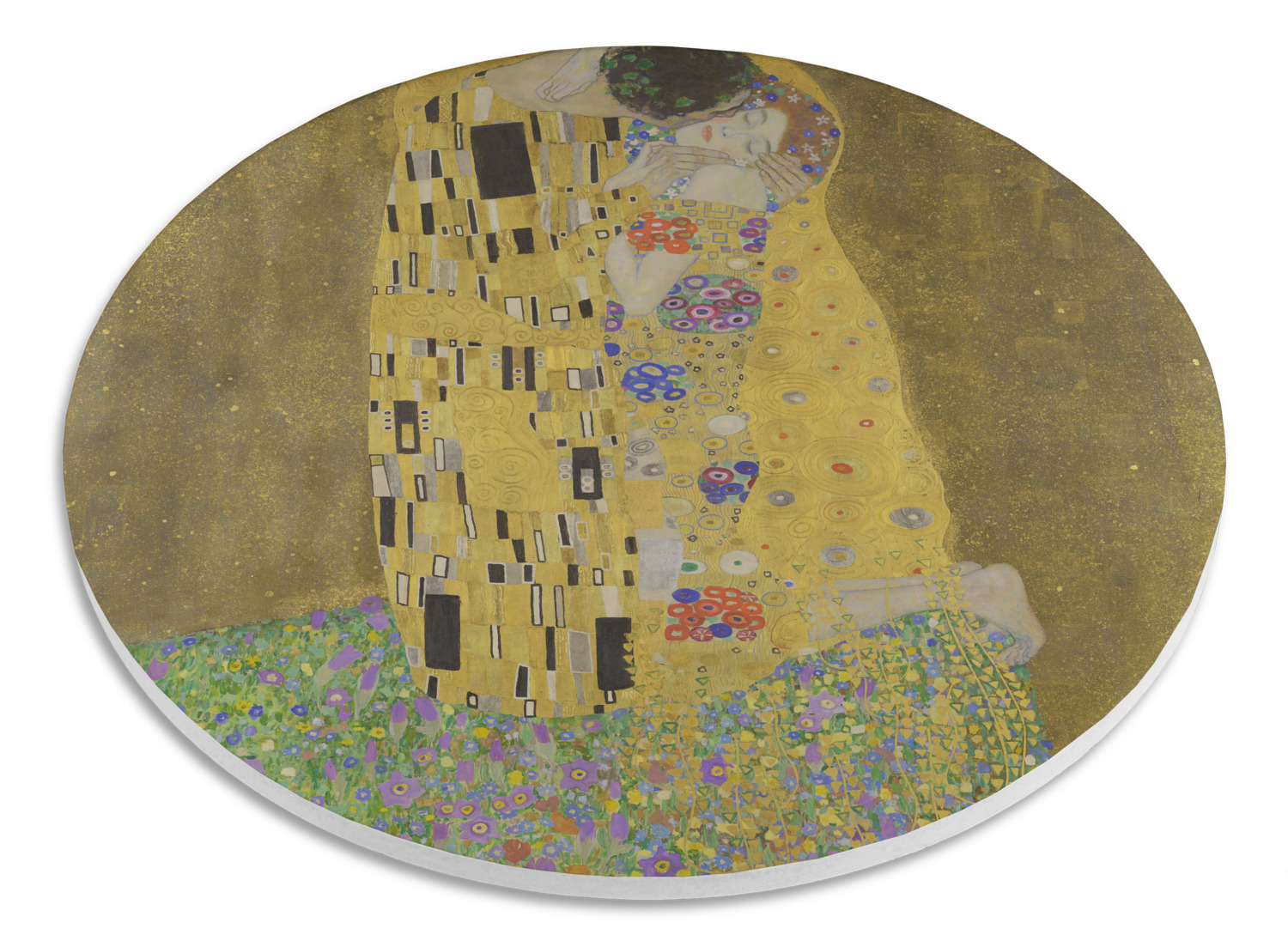 Now you can enjoy this beautiful art on a daily basis. Well not all of it! To put The Kiss (a square) on products, we use as much of the painting as we can on each product. So for a square product like the shower curtain - we use the entire square; however, for other products such as the wristlet (a wide 4x1 rectangle) - you get a small slice of the painting and we use the focal point - which in this case is The Kiss!