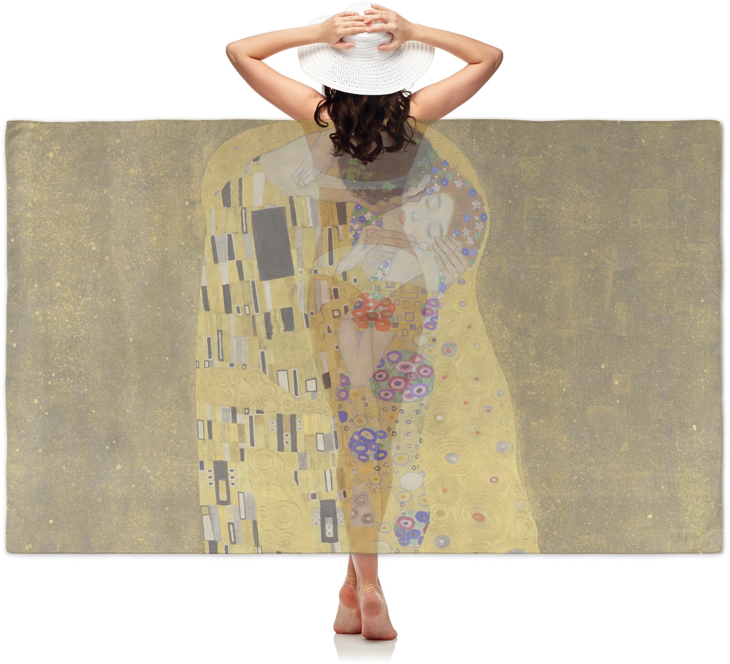 Now you can enjoy this beautiful art on a daily basis. Well not all of it! To put The Kiss (a square) on products, we use as much of the painting as we can on each product. So for a square product like the shower curtain - we use the entire square; however, for other products such as the wristlet (a wide 4x1 rectangle) - you get a small slice of the painting and we use the focal point - which in this case is The Kiss!